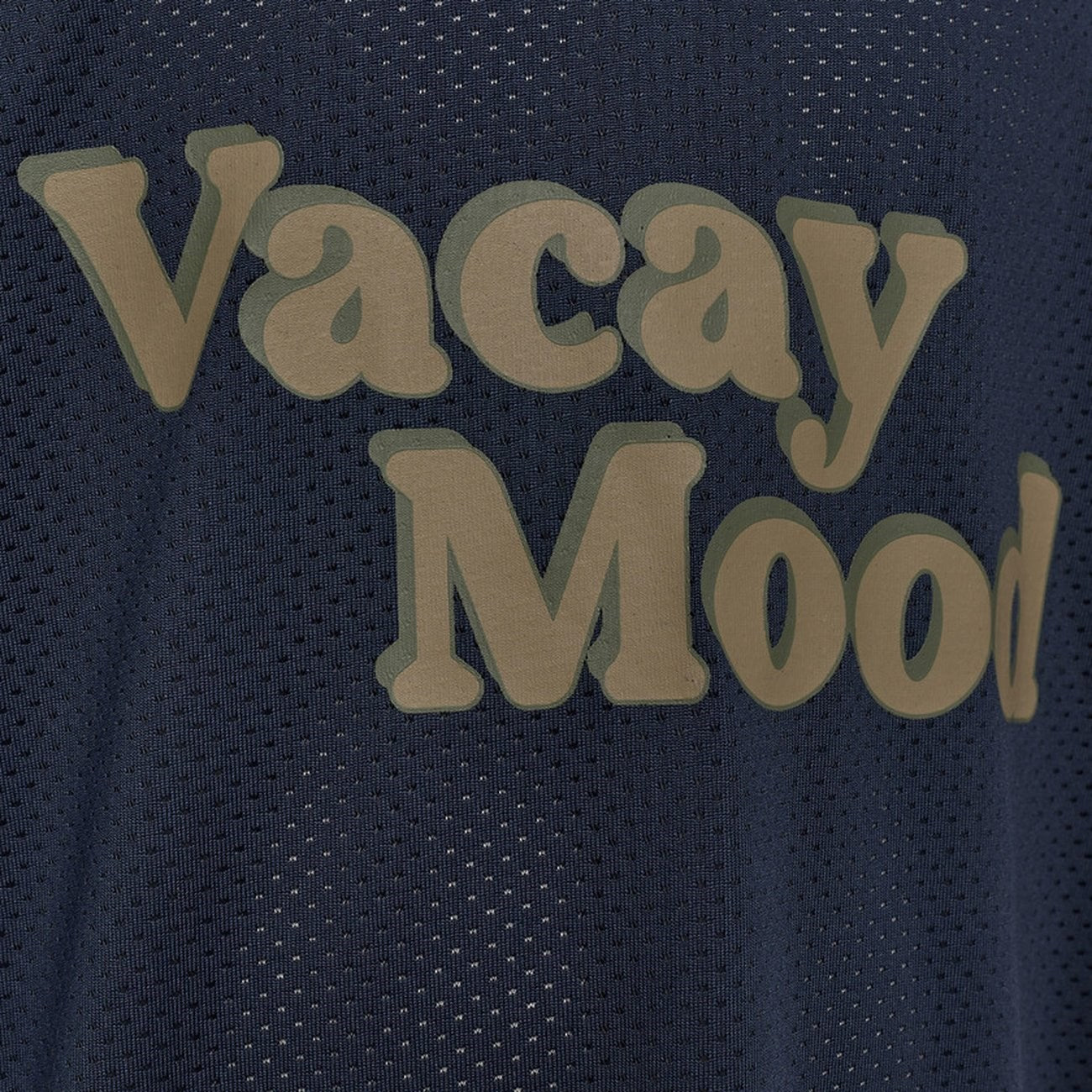 Oversize T-skjorte i mørkeblå mesh med "Vacay mood"-trykk foran! Perfekt for feriestemningen! Laget av 92 % polyester, 8 % elastan. Husk å følge vaske- og bruksanvisningen. For enhver morsom dag!