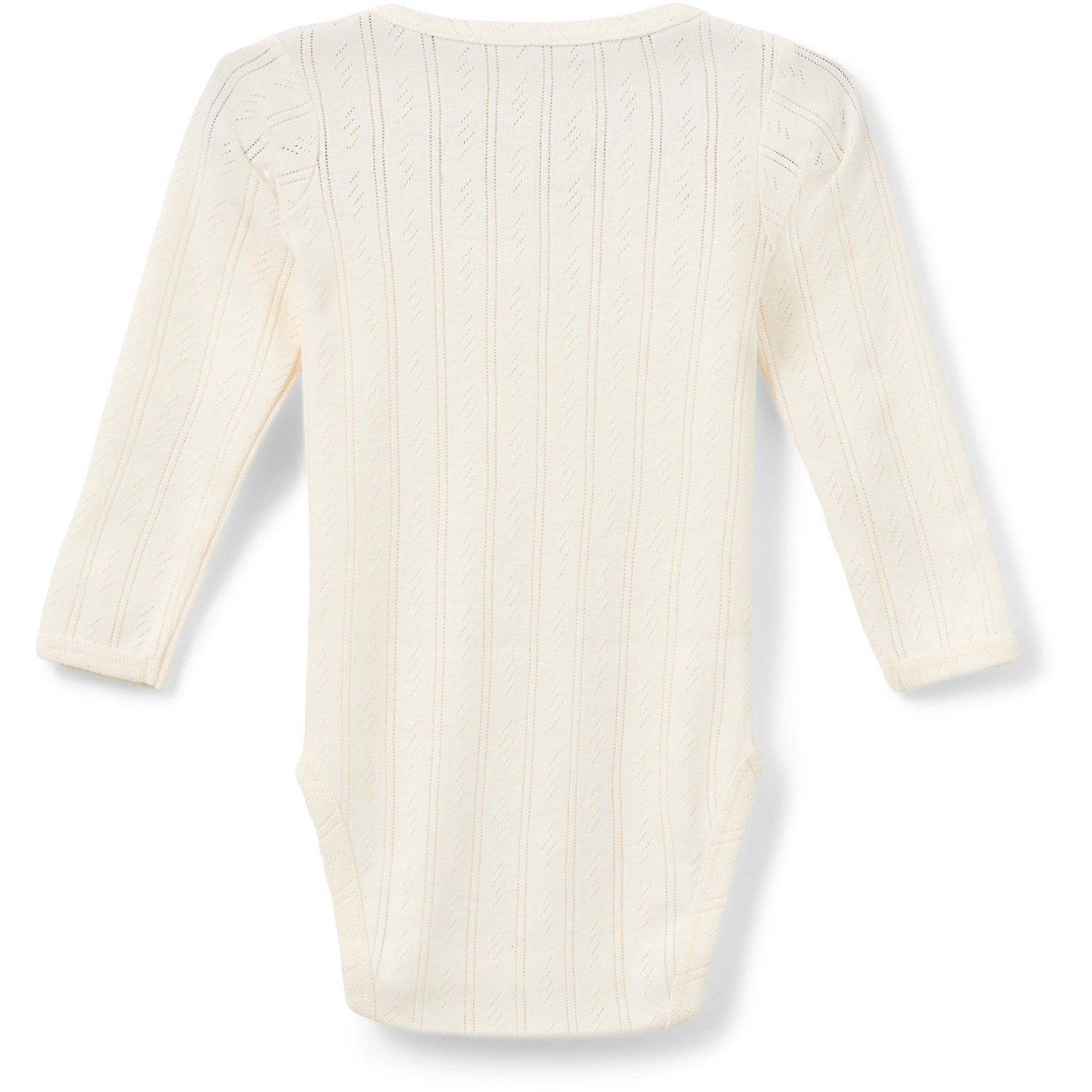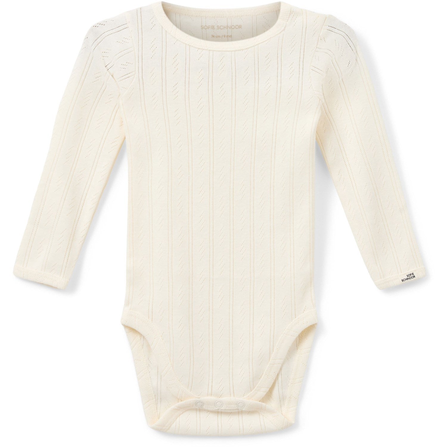 La din lille kjære oppleve ultimat komfort og søt stil med Sofie Schnoor Off White Dictesb Bodystocking. Denne sjarmerende bodyen er designet i en vakker off-white ribbestruktur som føles like bra som den ser ut. Med lange ermer og en klassisk rund hals er den både praktisk og populær. Enkel trykknapplukking nederst gjør den til en favoritt for både foreldre og babyer ved byttetid. Den er laget av 100 % økologisk bomull, og er både myk mot huden og miljøvennlig.