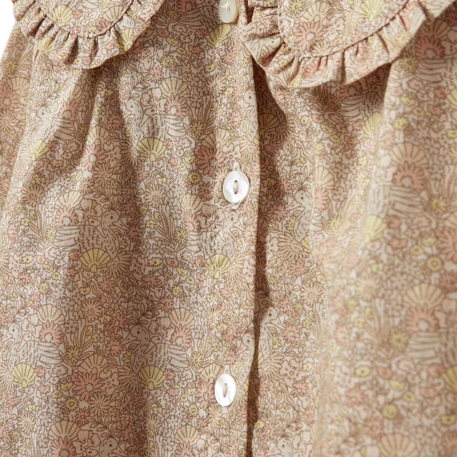 La din lille kjære blomstre i Sofie Schnoors sjarmerende bluse! Med sitt livlige gule blomstertrykk og søte runde krage med volangkant er denne skjorten perfekt for både lek og festlige anledninger. Praktiske knapper foran gjør den enkel å ta av og på, mens de elastiske håndleddene sørger for en komfortabel passform hele dagen. En sikker hit for enhver stilbevisst jente!