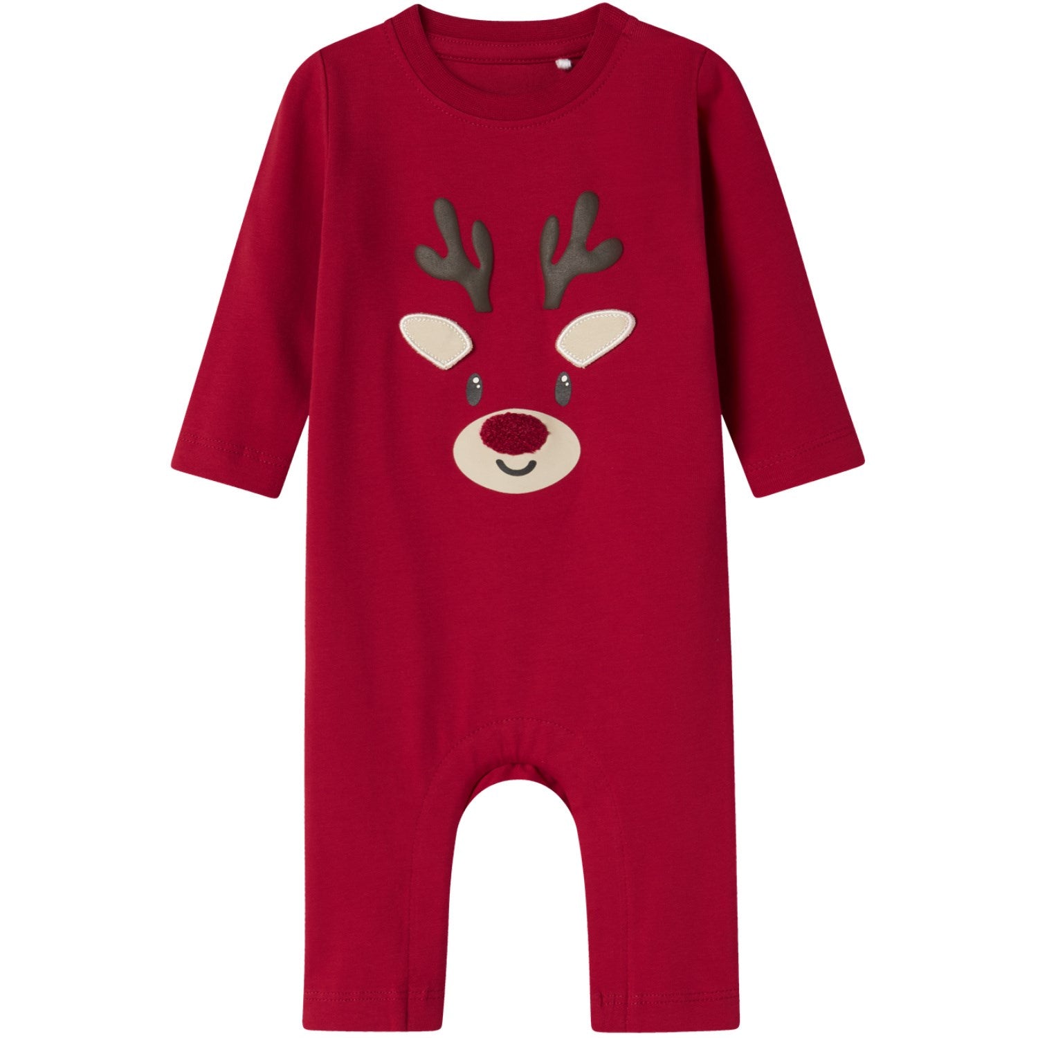 Den sjarmerende røde fargen med festlige mønstre bringer julestemningen rett inn i garderoben, og de lange ermene holder små armer varme på kjølige dager. En praktisk trykknappfeste gjør denne bodysuiten enkel å ta av og på, ideell for både lek og hvile.