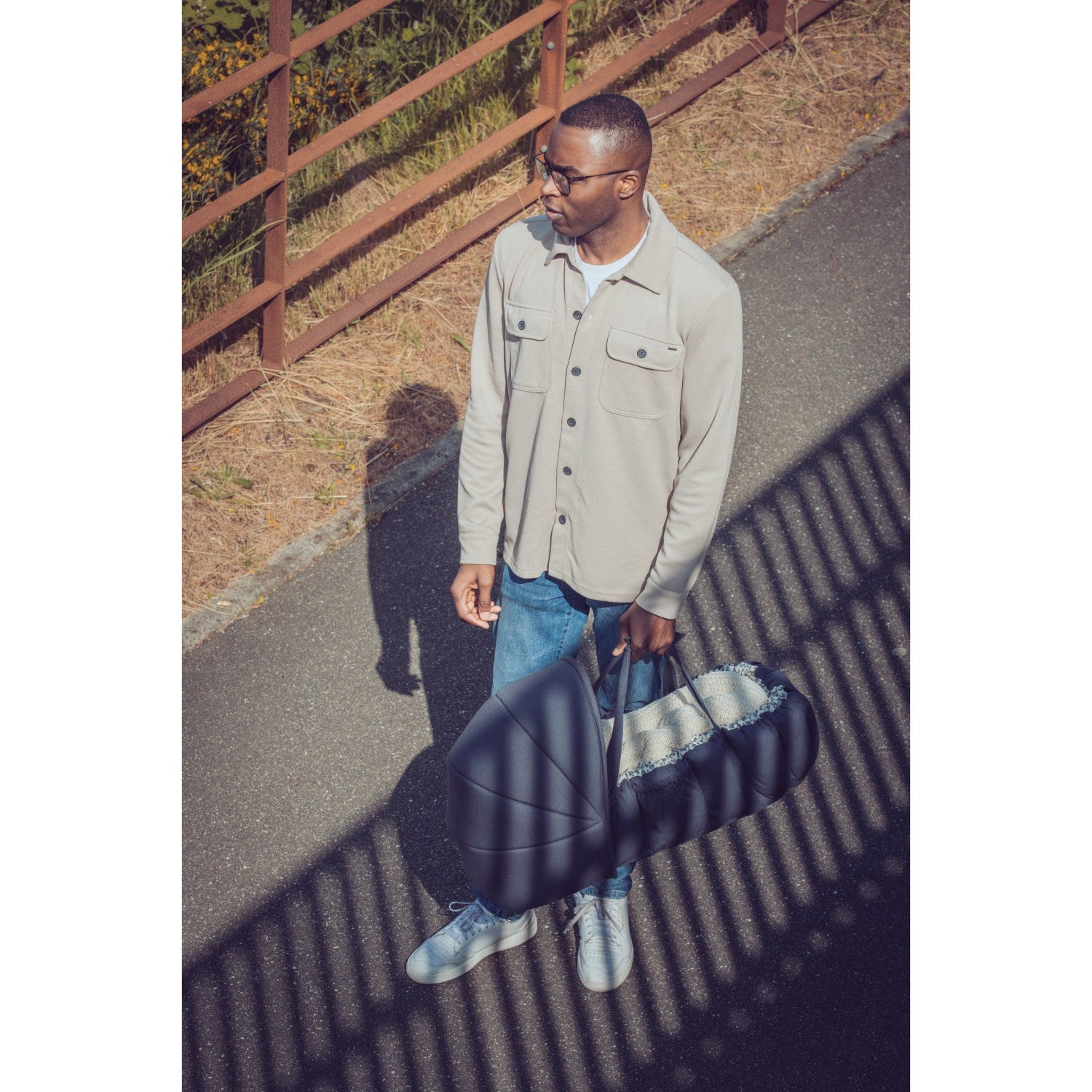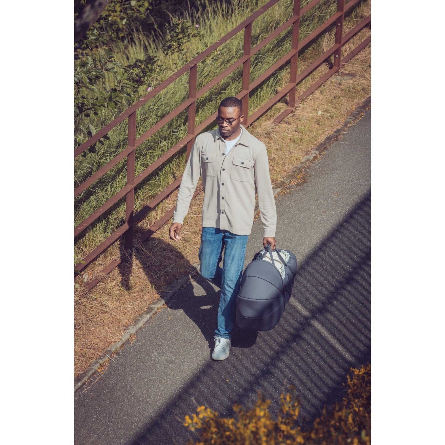 - Festes enkelt til den ene enden av babynestet og festes sikkert rundt håndtakene med en trykknapp