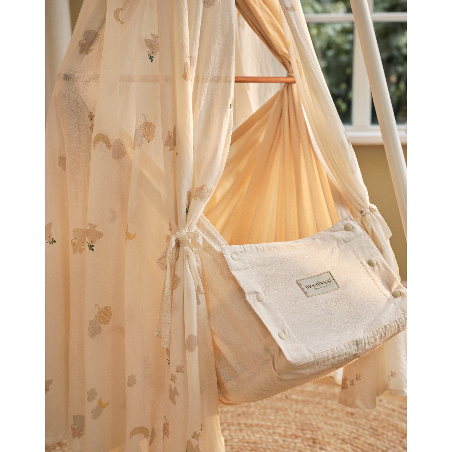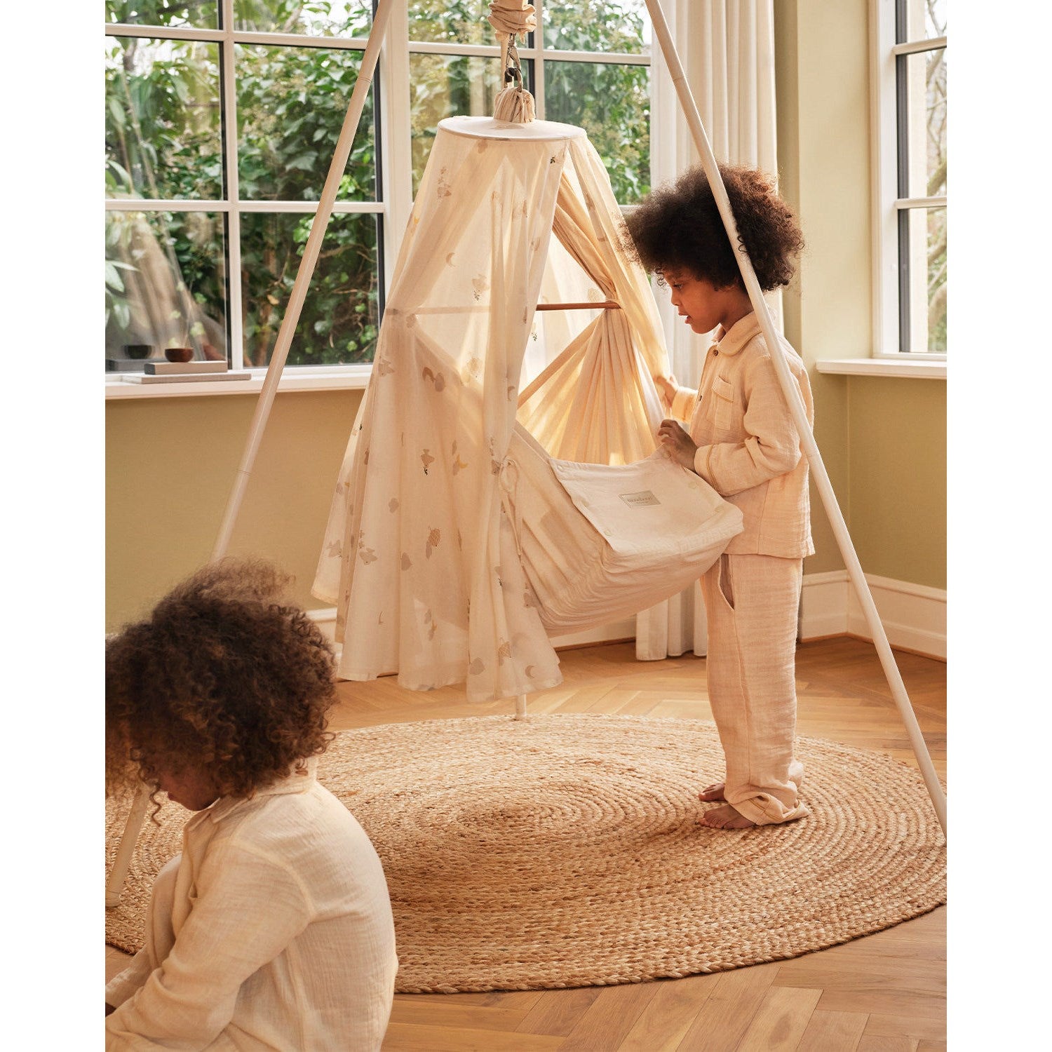 Vår sengehimling er fremstilt av GOTS-sertifisert økologisk bomull, og er forvasket for å bevare sin formeleganse og letthet i montering. Med et rent skandinavisk design tilføres et pust av friskhet og stil til barnerommet. Den nedtonende fargen og myke teksturen bidrar til en lærerik og stimulerende miljø, mens dens enkle montering gjør det praktisk for daglig bruk.