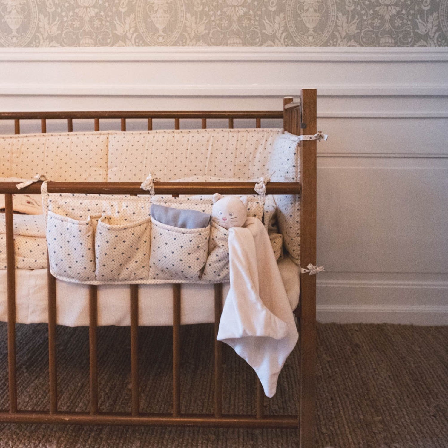 Introduser barnets soverom til "That's Mine Lots Of Love Sky Louis Sengelomme", designet for å holde orden med stil. Sengelommen er perfekt for å organisere små nødvendigheter som smokker og kosestoff, og sørger for at alt er lett tilgjengelig. Fremstilt i behagelige materialer og flotte utskrifter, denne sengelommen kan enkelt kombineres med sengetøy og bedbumper fra samme serie, noe som gir et koordinert og rolig uttrykk. Enkel å bruke og vedlikeholde, denne sengelommen blir en praktisk og sjarmerende tilføyelse til ethvert barnerom.