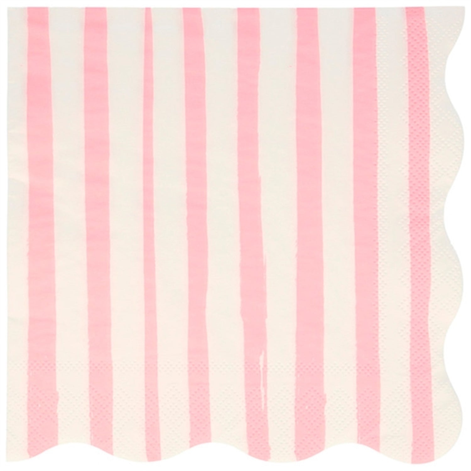 Gi barneselskapet et løft med Meri Meri Stripe Pink Servietter Large. Disse sjarmerende og praktiske serviettene, designet med livlige striper i rosa, er både tiltalende og funksjonelle. Perfekte for enhver anledning, de er lett å bruke og gjør ryddingen etterpå til en lek. Legg et ekstra touch av stil og farge til bursdager eller familiemiddager.