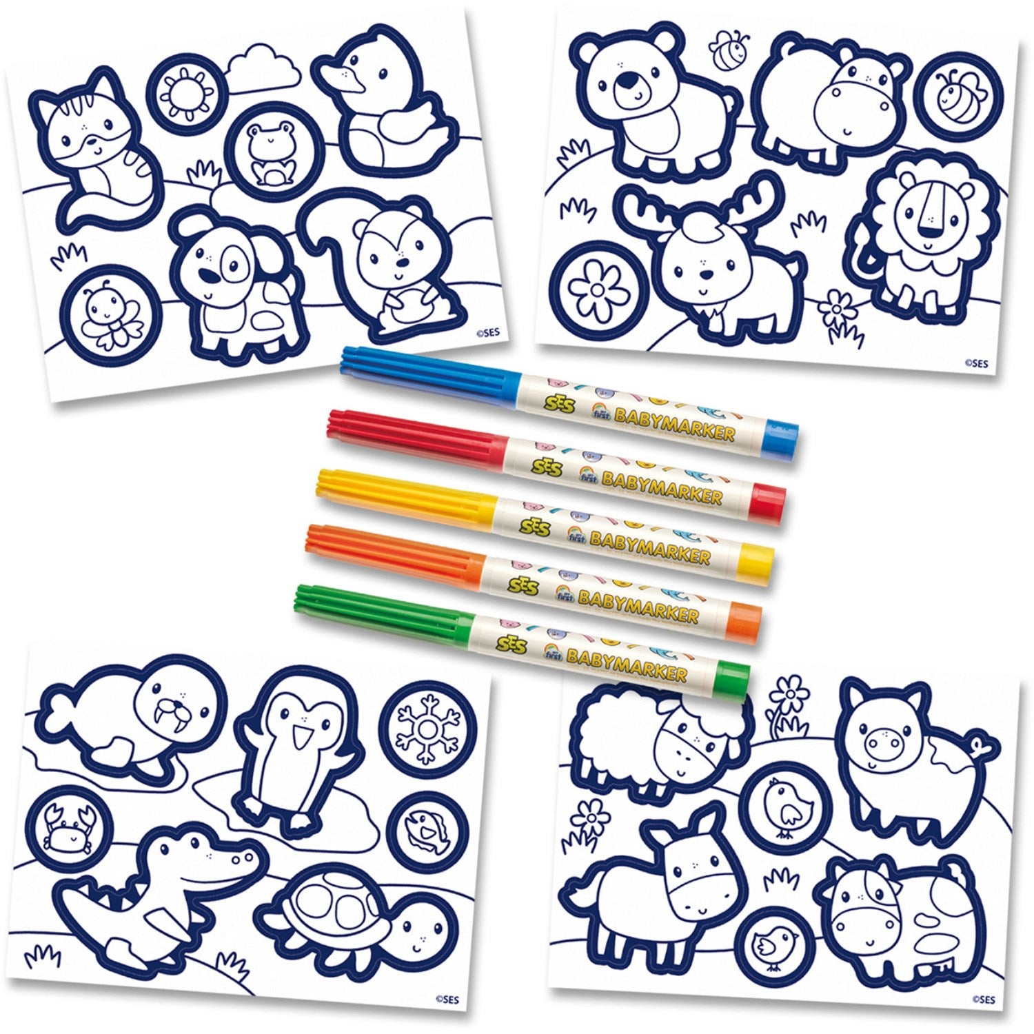 Oppdag gleden av kreativitet med SES Creative Mine første fargeklistremerker! Dette settet tillater barn å utforske sin kunstneriske side ved å farge sterkt konturerte motiv på klistremerkene med fem inkluderte, vaskbare tusjer. Perfekt designet for små hender, tusjene har en robust, rund spiss for enkel bruk, noe som gjør dette til et ideelt valg for barn fra 1 til 4 år. Lett å oppbevare og transportere, settet oppmuntrer til kreativ lek hjemme eller på farten. Med dette settet kan barna lage personlige dekorasjoner trygt og enkelt, samtidig som det stimulerer deres læring innen farger og motoriske ferdigheter.