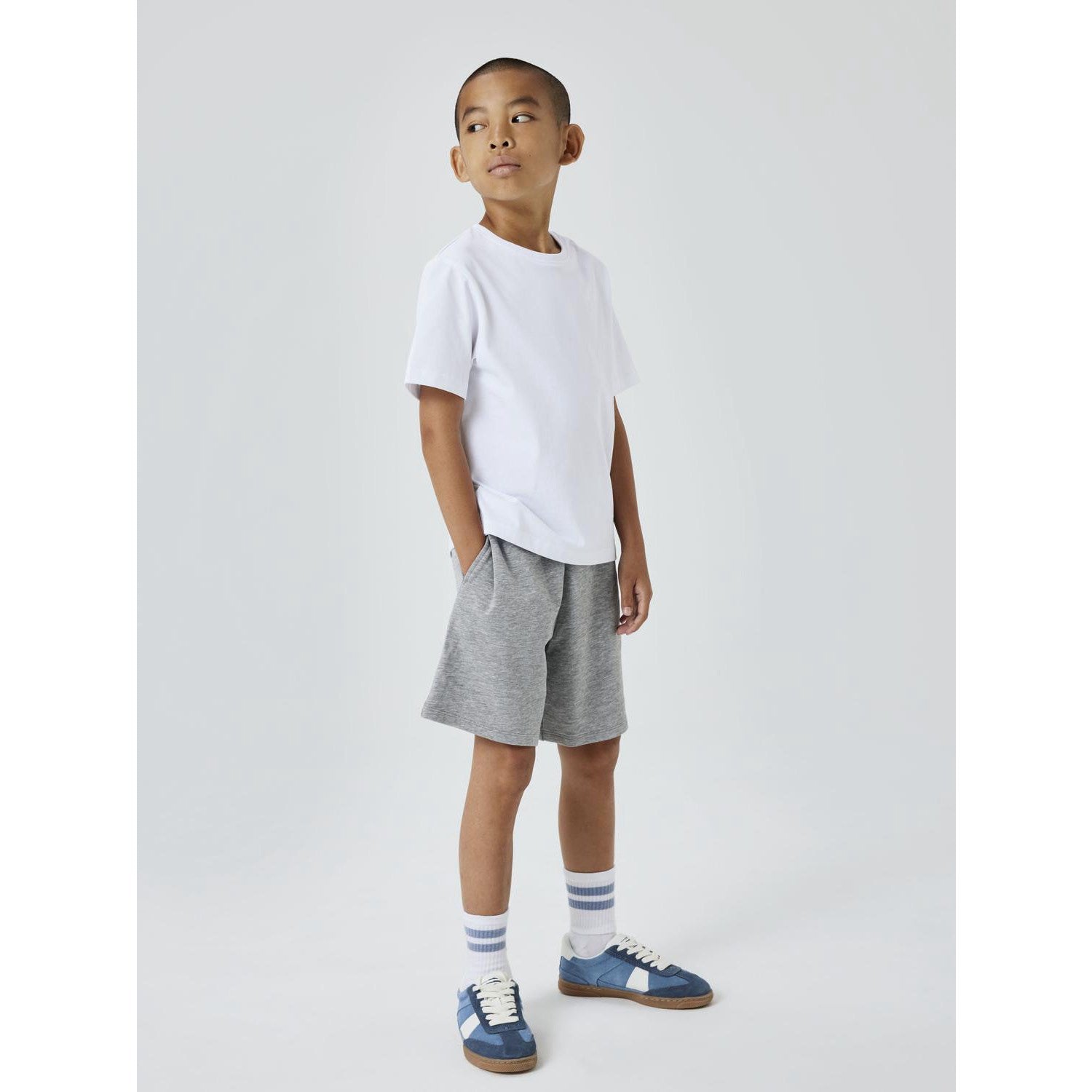 Gi barnets hverdag et løft med Name It Grey Melange Cyber Sweat Shorts Noos. Disse komfortable shortsen er laget av ubørstet svettestoff med en myk looper på innsiden, perfekt for sensitiv barnehud. Med sitt trendy design i gråmelert farge og justerbar midje, tilbyr de både stil og en skreddersydd passform. Dette plagget sikrer optimal bevegelsesfrihet, noe som er essensielt i lek og utforskning. Lettstelte og holdbare, de er ideelle for både lekse og eventyr.