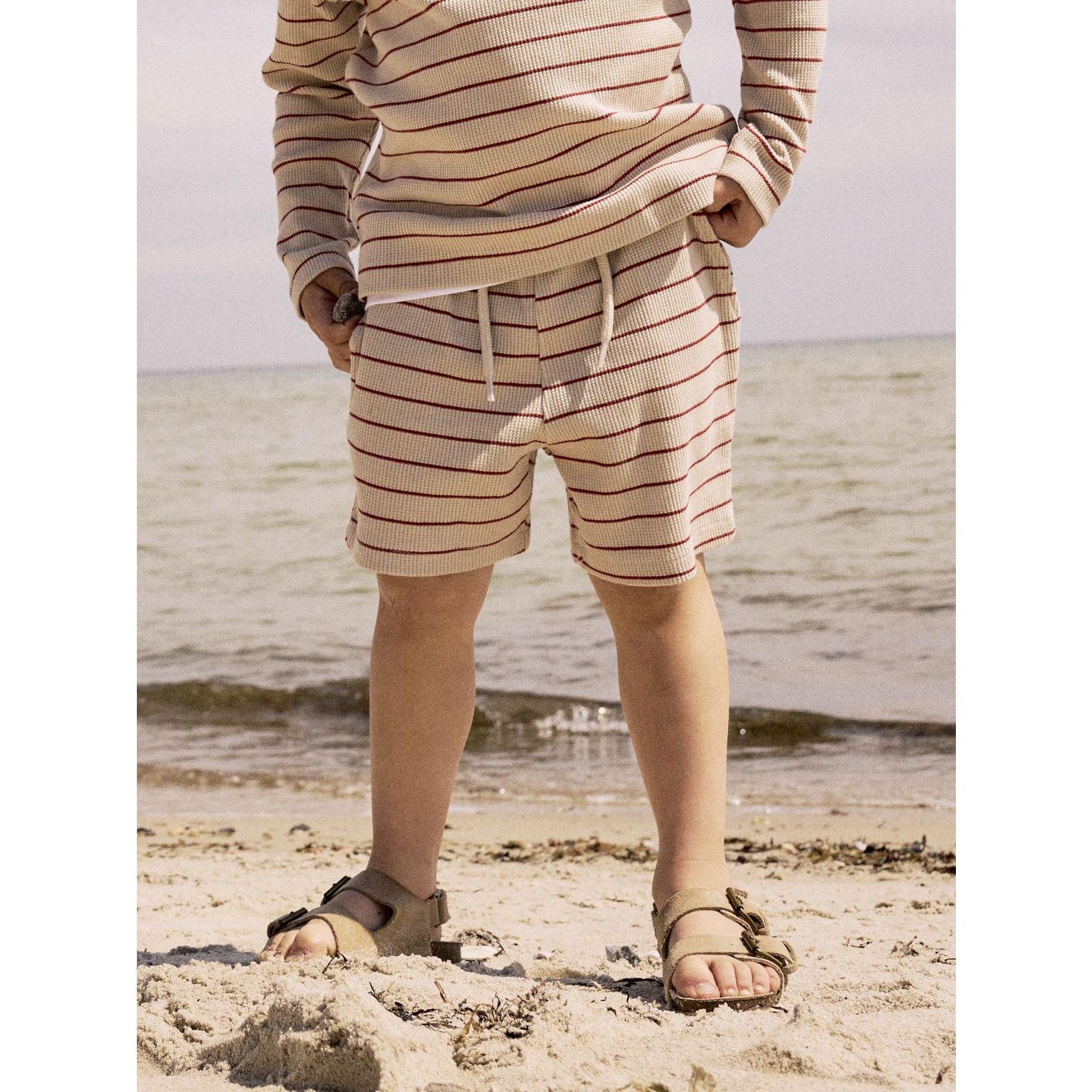 Gled barnet ditt med disse sjarmerende Name It shortsene i fargen rød oker, perfekte for sommerens eventyr. Laget av jersey, et lett og stretchy materiale, gir disse shortsen både komfort og bevegelsesfrihet. Den myke overflaten er skånsom mot sensitiv barnehud. Disse shortsene har praktiske sidelommer og justerbar midje for optimal passform, noe som sikrer at de sitter godt uansett aktivitet. Med en normal passform og fast ledning, er de både stilige og praktiske for barnets hverdagslek. Kombiner med en favorittopp for en uanstrengt og behagelig stil. Care for these shorts is effortless, requiring a simple machine wash to maintain their vibrant color and texture.