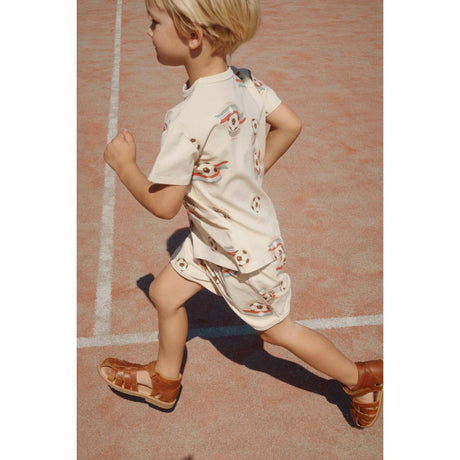 Shortssettene er designet for barn som liker å bevege seg og utforske, med løse passformer som ikke begrenser aktiviteten. De elastiske linningene på shortsene tilpasser seg barnets bevegelser, mens de korte ermene gir god luftsirkulasjon.