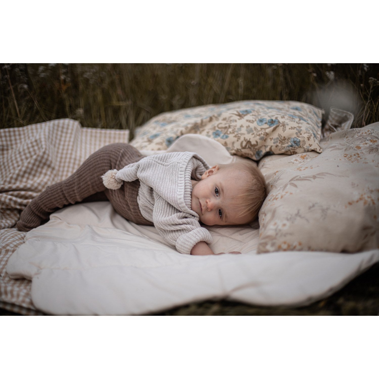 Produktet har en rik kakaofarge komplimentert med et dekorativt mønster, som gjør dem ideelle for båe gutter og jenter. Formen og størrelsen er nøye tilpasset for å sikre en behagelig passform, samtidig som fleksibiliteten i stoffet tillater fri bevegelse, uansett aktivitet.