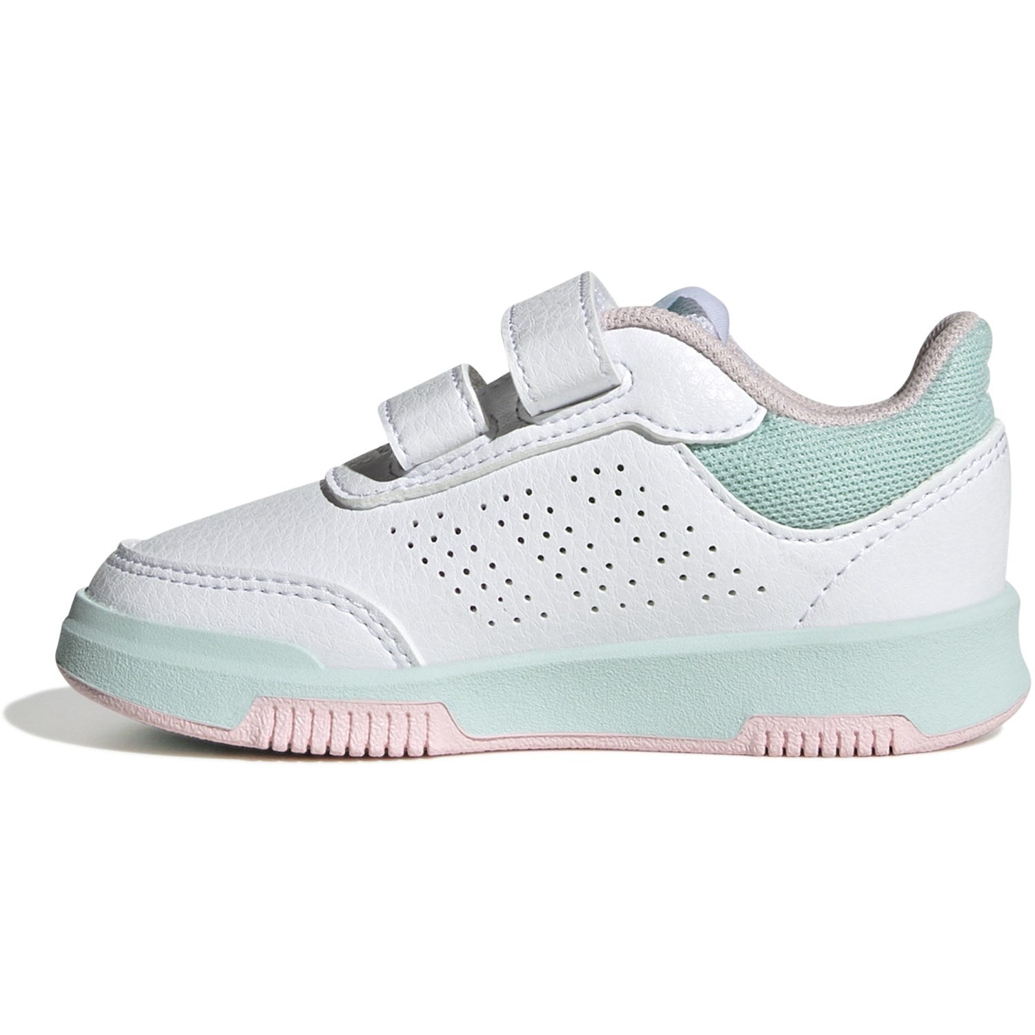 Oppdag gleden ved bevegelse med adidas Originals Tensaur Sport 2.0 Cf I sneakers! Disse småbarnsskoene kombinerer komfort og stil i et øye-poppende mønster av Ftwr White, Clear Pink og Semi Flash Aqua. Perfekt for aktive barn, de er designet med borrelåsstropper for enkel på- og avtaking og en non-marking gummisåle som skåner gulvene når eventyret flytter seg innendørs.