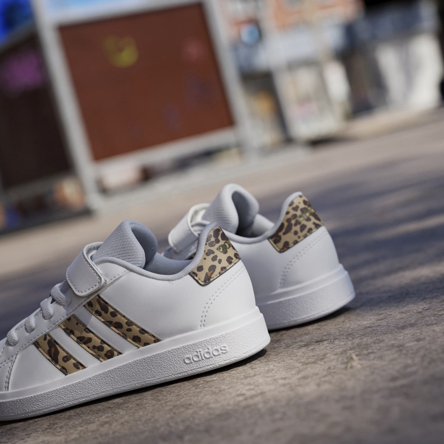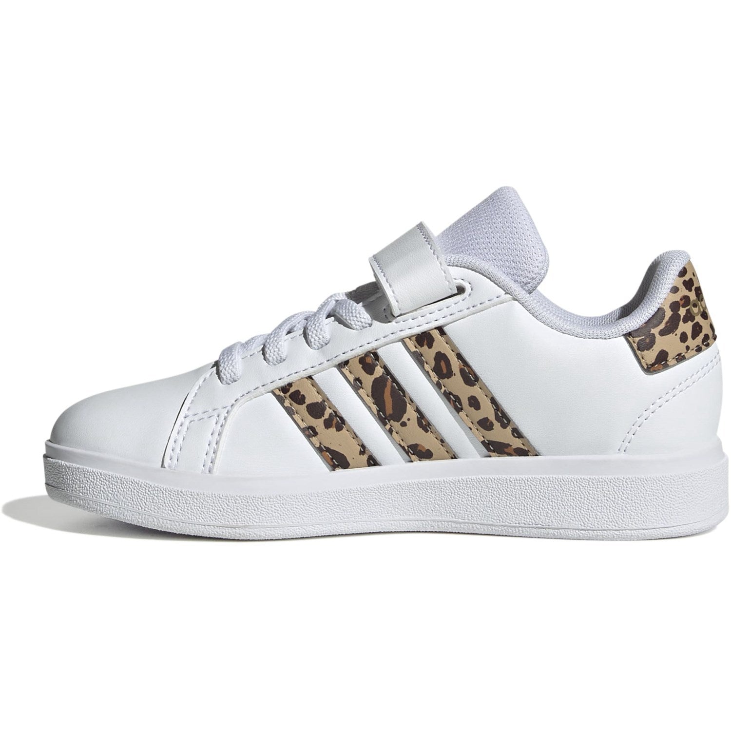 Oppdag våre nye Adidas Originals Grand Court 2.0 El C joggesko, perfekt for det aktive barnet. Disse joggeskoene er laget av slitesterkt materiale og presenterer seg i en stilig fargekombinasjon av Ftwr White, Magic Beige og Matte Gold med et moderne preg av trykk. Med en praktisk kombinasjon av lisser og borrelåsstropper, tilbyr skoene både enkel påkledning og en sikker passform. Det myke fôret og den fleksible gummisålen garanterer maksimal komfort og støtte under alle barns lekne aktiviteter. Disse joggeskoene kombinerer funksjonalitet med den ikoniske 3-Stripes-stilen, og sikrer at barnet ditt ikke bare ser bra ut, men også føler seg komfortabel under lek og sport.