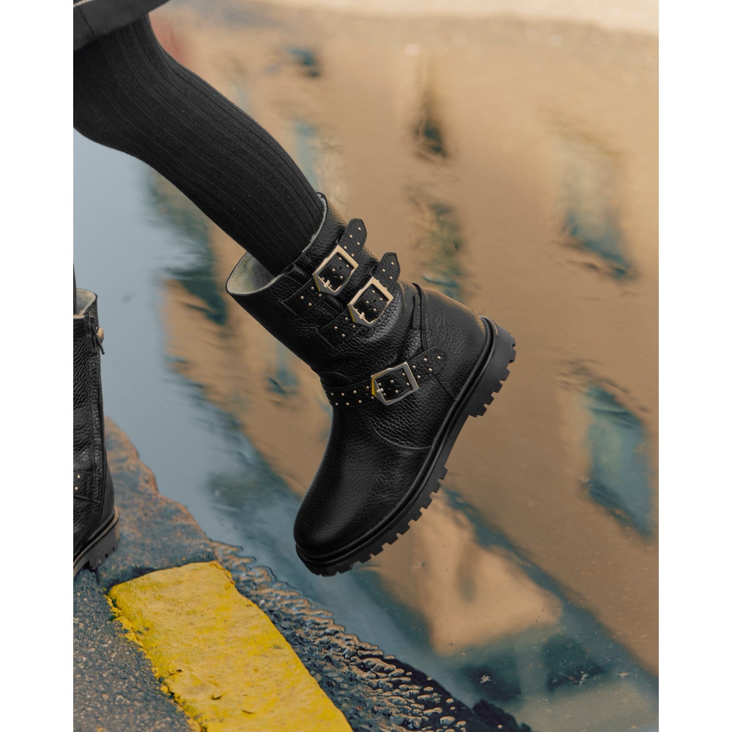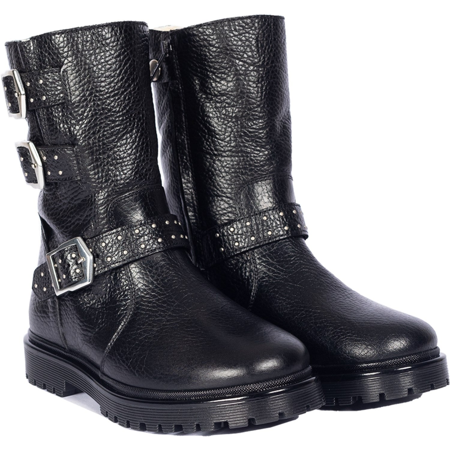 Angulus Black Tex støvel med nagler, spenner og glidelås