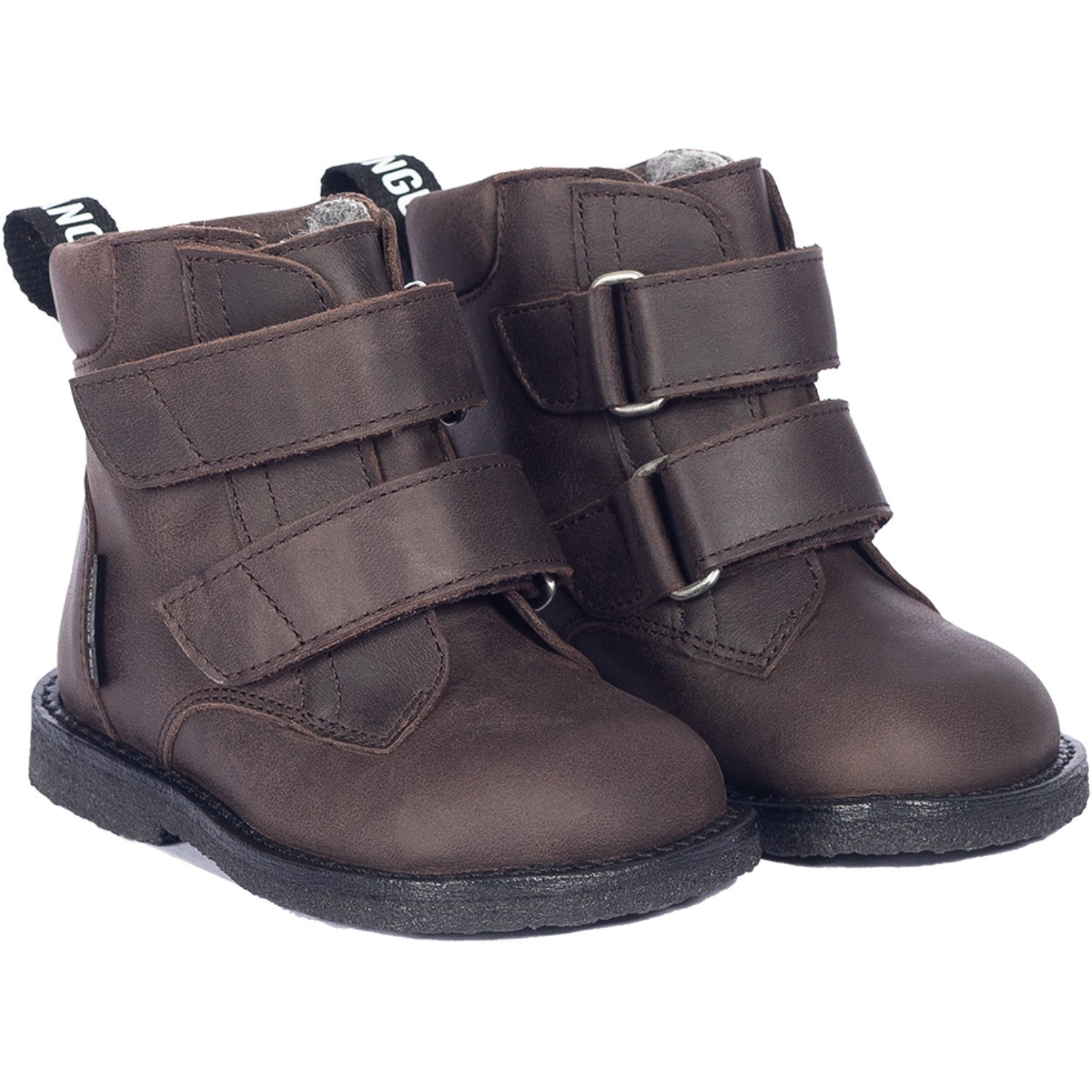 Oppdag våre Angulus Dark Brown Begynner Tex-Støvler, perfekte for barnets første vintersesong. Disse støvlene i oljet nubuck er ikke bare slitesterke og vannavstøtende, men de er også designet for å gi optimal varme og tørrhet i kaldt vær. De har grått ullfôr og en lett, myk rågummisåle av fornybar naturgummi, og justerbare borrelåsstropper sikrer enkel på- og avkledning. En fast hælkappe og polstret krage tilbyr ekstra komfort og støtte, gjør disse støvlene til det ideelle valget for din lille eventyrer. Disse støvlene, laget av naturlige, pustende materialer og en PFAS-fri Tex-membran, er designet i Danmark og kjærlig håndlaget i Portugal. Husk å måle barnets fot for å sikre best mulig passform og komfort. Innermateriale: Vanntett PFAS-fri TEX-membran / Merinoullfôr Innersålemateriale: Fôr i merinoull Materialer: 100% Skinn, *Tex/Ullfôr*, Skinn, Rågummi M Yttermateriale: Oljet skinn med TEX-membran Yttersålemateriale: FSC-sertifisert svart rågummisåle