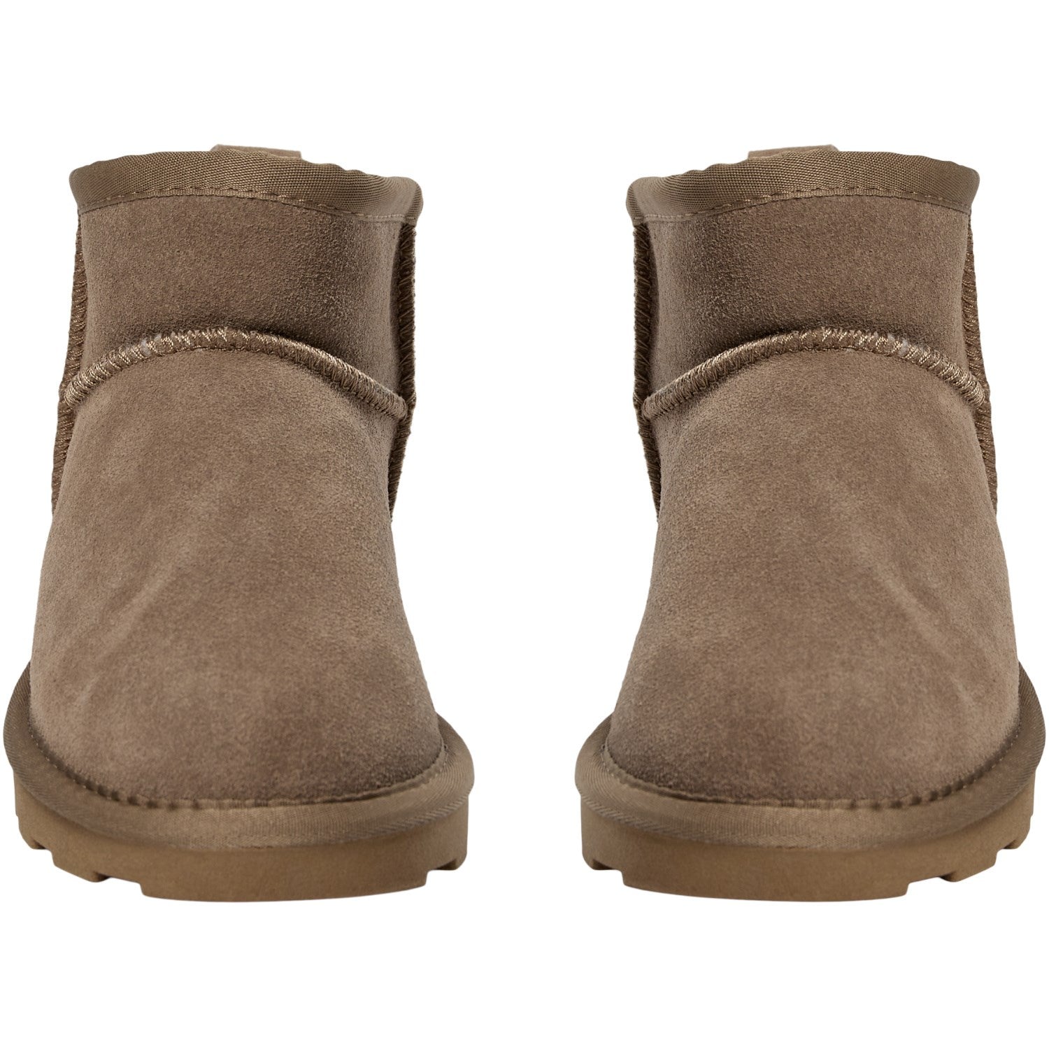 - Ekstra: • Vannavvisende støvler. • Laget av 100 % semsket skinn, tekstil og gummi. • Støvlene har et varmt fôr i ull og fuskepels, en solid gummisåle og en trekkflik bak for enkel påkledning. • De er designet for å holde føttene varme og tørre under forskjellige værforhold.