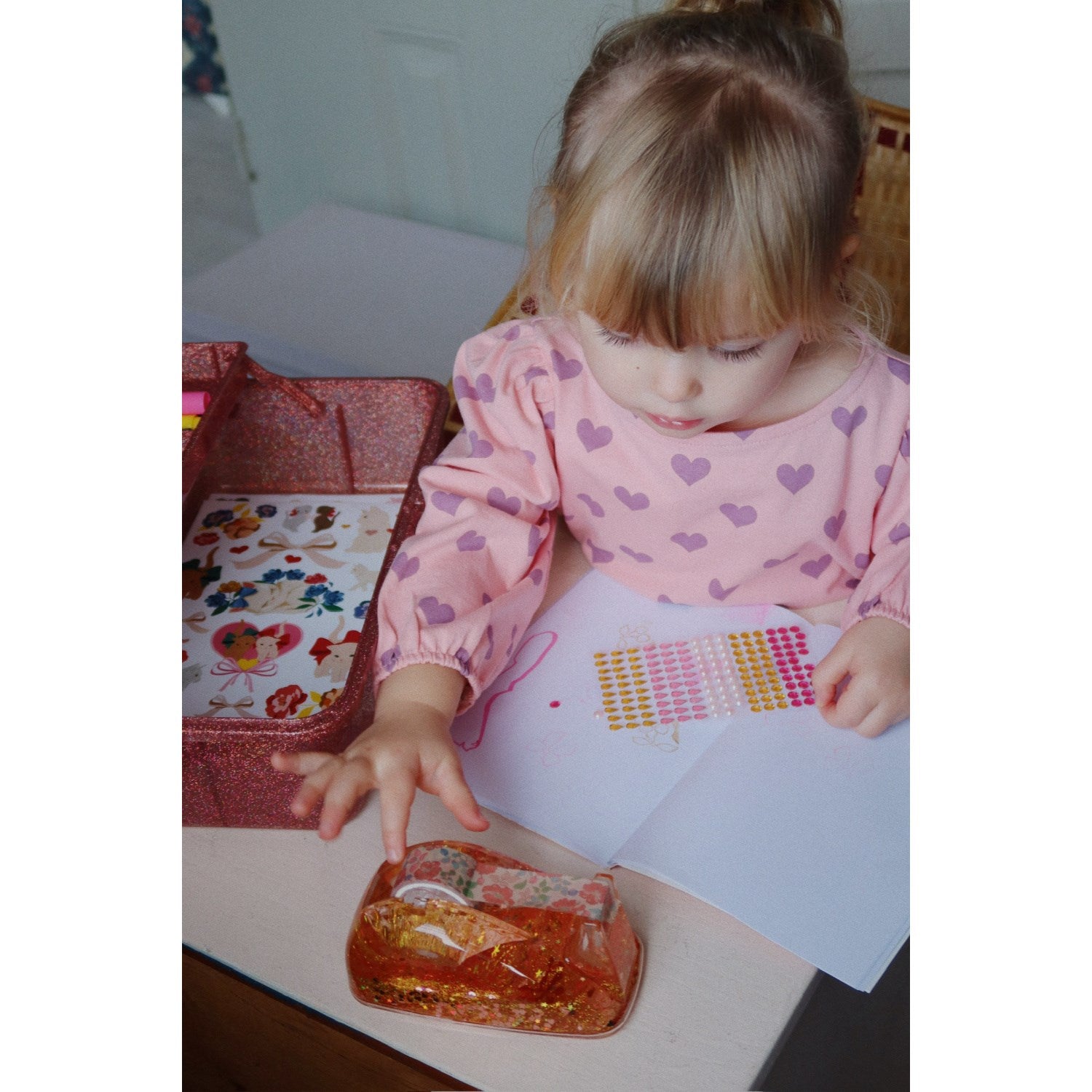 Oppdag Konges Sløjd Red Sparkle Splash tapedispenser, den perfekte følgesvennen for ethvert tegne- og skrivebord. Med sitt fargerike og glitrende design, gjør denne tapedispenseren både organisering og kreative prosjekter morsommere for barna. Den er spesielt designet for å være brukervennlig for små hender, sikrer trygg bruk, og er lett å bære rundt for kreative aktiviteter hvor som helst. Dessuten er den enkel å vedlikeholde, noe som gjør den til et ideelt tillegg til barnets kunstneriske utfoldelser, samtidig som den oppmuntrer til læring og engasjement gjennom lek.
