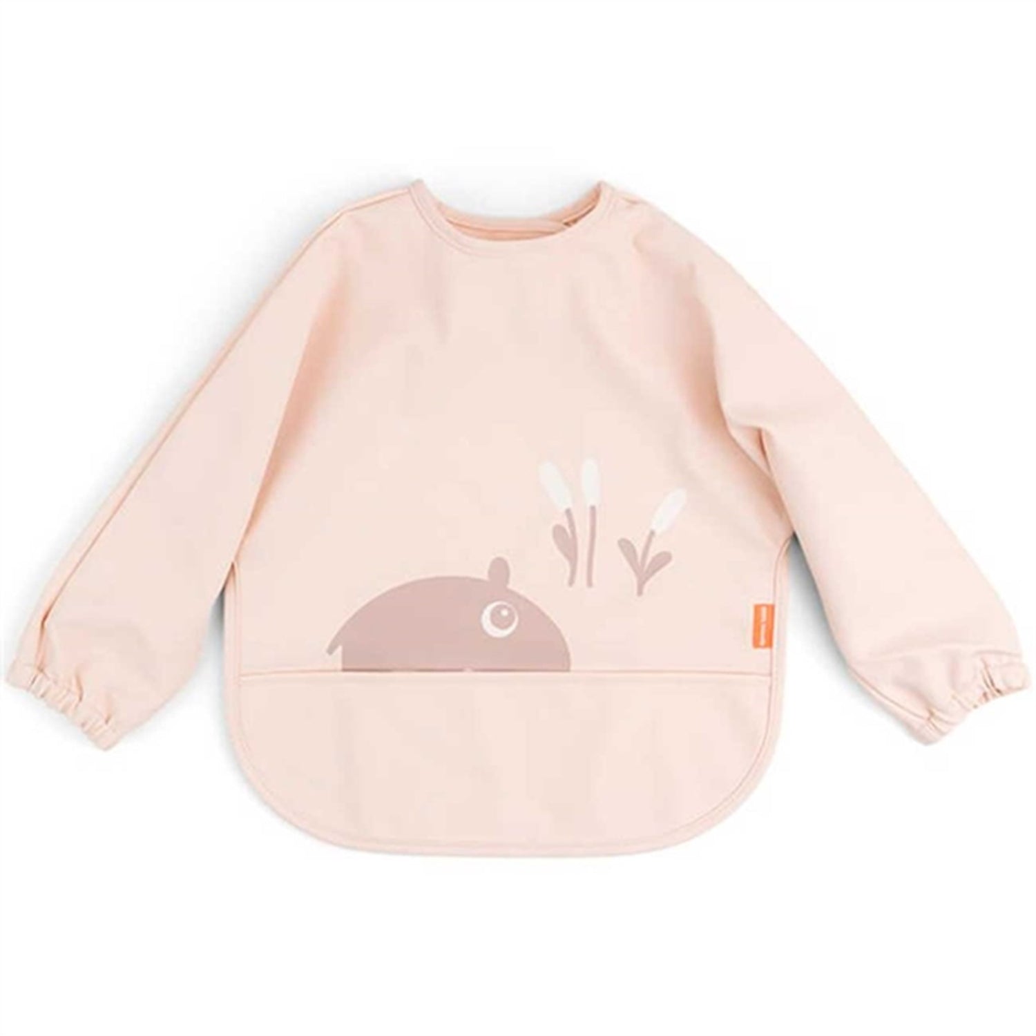 Superfin smekke med lange ermer. Her i en veldig fin rosa nyanse med motiv av den søteste. En justerbar dobbel lukking sørger for at smekken passer til både babyer og småbarn. Den myke selebuksen er vanntett og har praktiske ermer med elastikk for å holde de minste tørre.