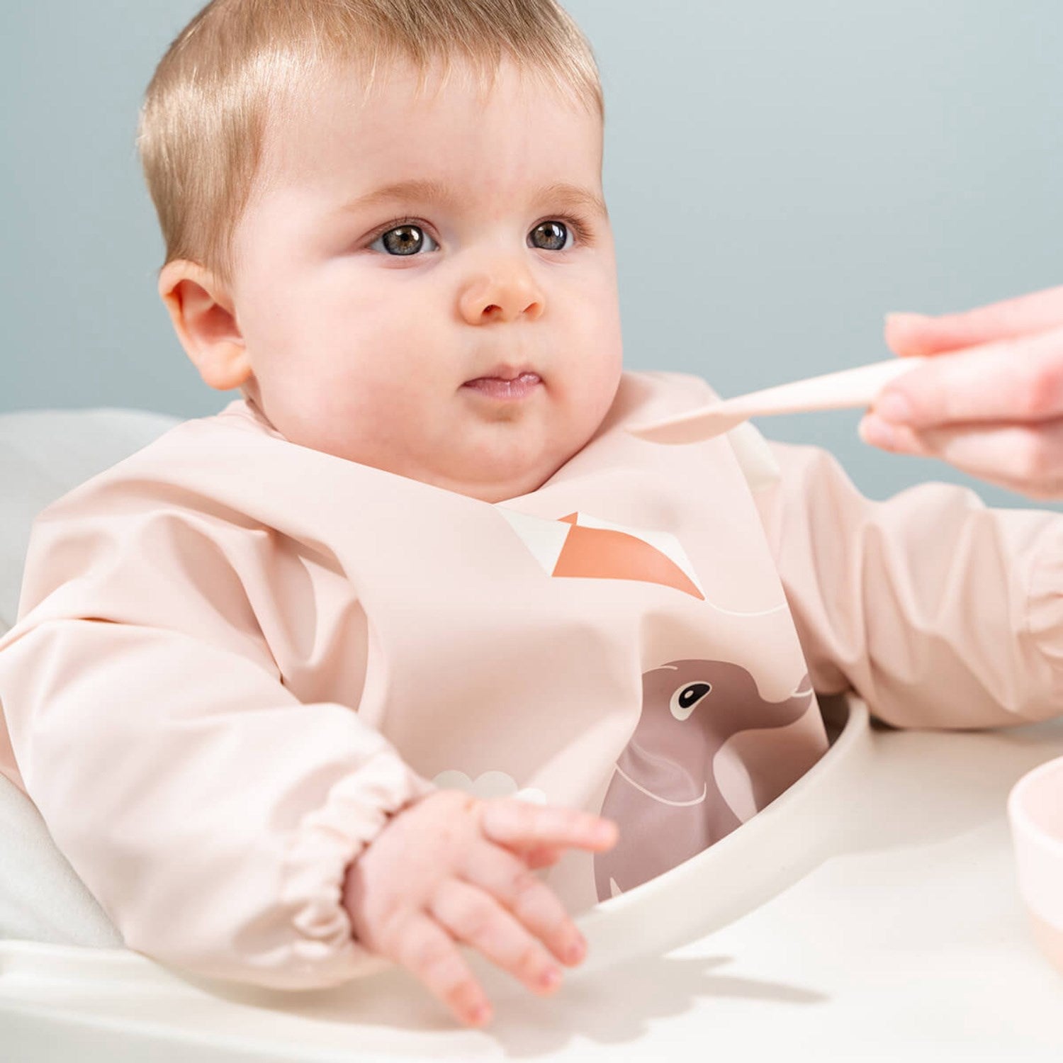 Smekker fra Done by Deer er den perfekte beskyttelsen for barnet ditt under måltidene! Den søte pudderfargen og Elphee-motivet gir et lekent preg, mens den vannavstøtende finishen holder klærne rene. De lange ermene og lommen fanger opp tapt mat, mens den justerbare lukkingen gjør den enkel å justere. Laget av 100 % polyester med PU-belegg for enkel rengjøring. Med en frontlengde på 34 cm og ermebredde på 72 cm er denne smekken et praktisk og stilig valg for små barn.
