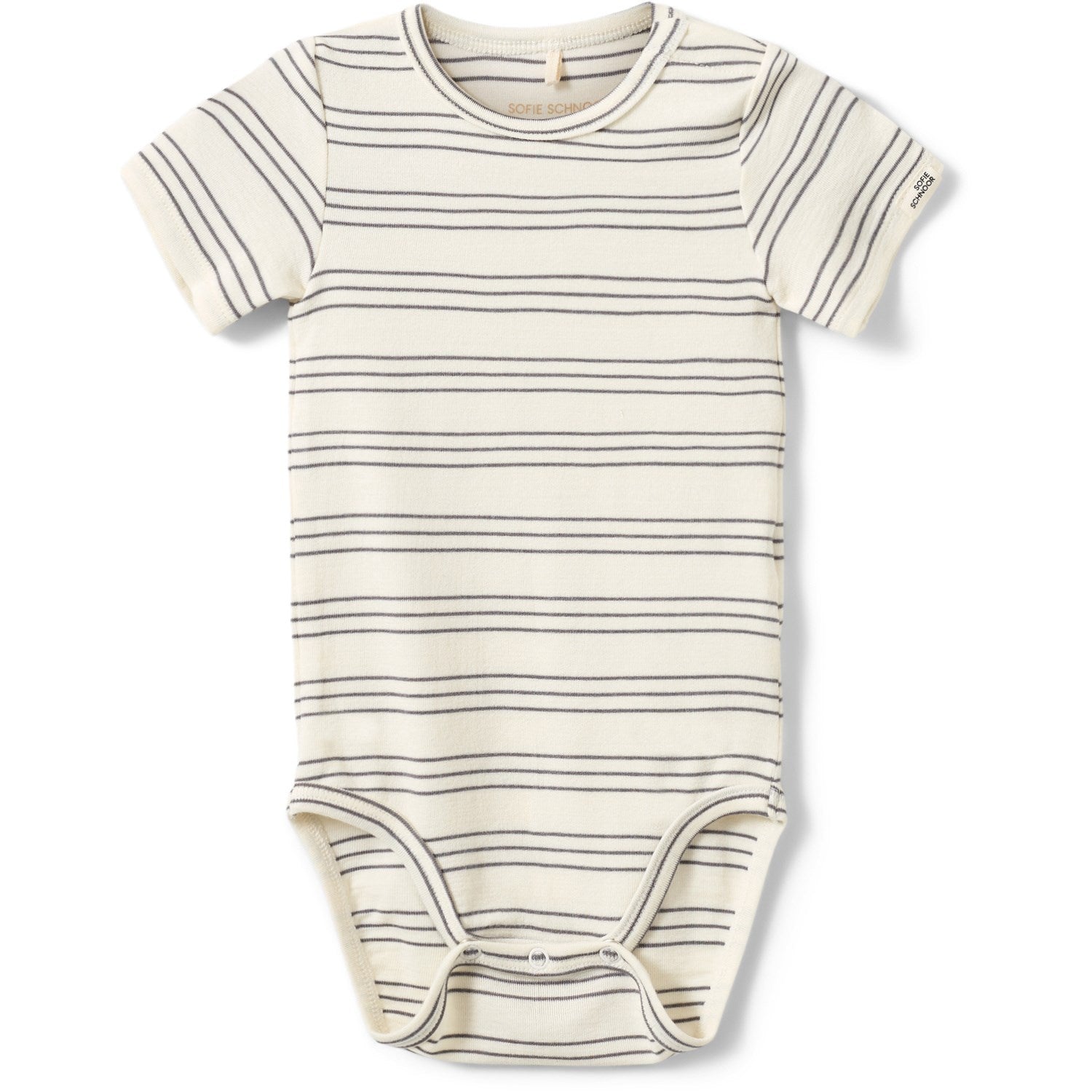 Denne sjarmerende bodyen fra Sofie Schnoor i antikk hvit med blå detaljer er perfekt for den lille. Laget av mykt materiale, sikrer den komfort og er skånsom mot sensitiv barnehud. Det tidløse designet og de lekne mønstrene gjør den til et yndet plagg i enhver garderobe. Enkel å vaske og vedlikeholde, denne bodyen er ideell for daglig bruk og kombinerer funksjonalitet med stil.
