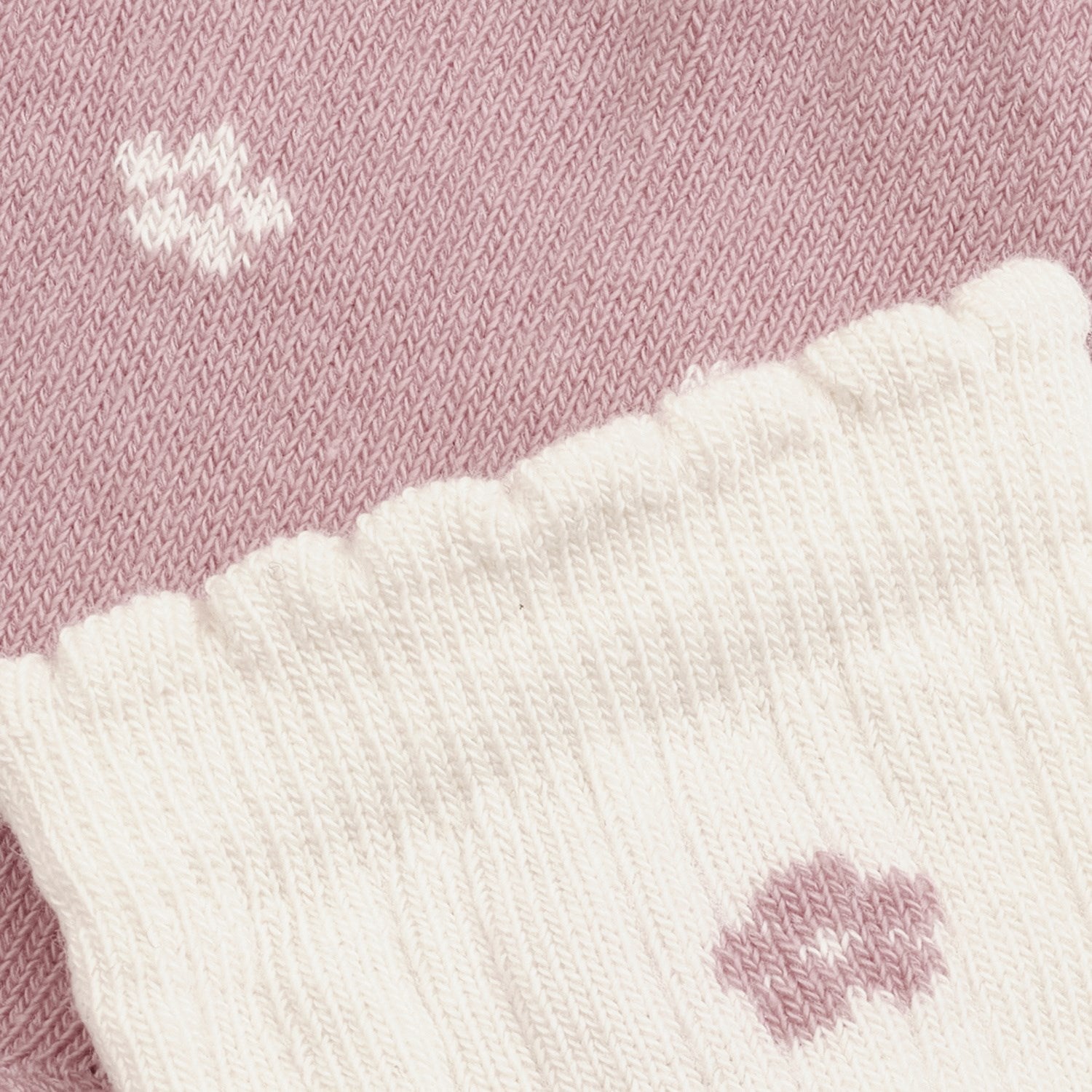 Gled små føtter med Minymo Ash Rose Strømper. Denne 2-pakningen inneholder et par ensfargede og et par med sjarmerende heldekkende trykk, perfekt tilpasset barnets hverdag. Laget av en myk bomullsblanding, sikrer disse sokkene komfort hele dagen. En lett passform og dekorative "lettuce" kanter tilfører et stilig preg. Sokkene er både praktiske og enkle å vedlikeholde, ideal for livlige barneaktiviteter.