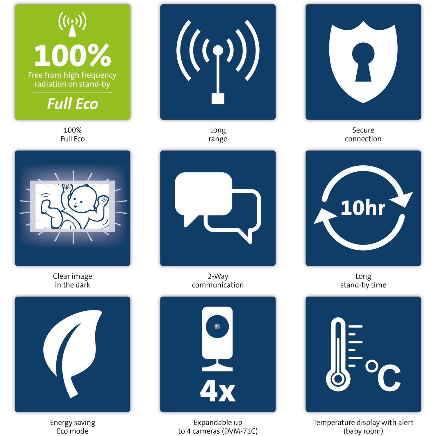 Noen nøkkelfunksjoner inkluderer en talk back-funksjon som lar deg kommunisere og berolige din baby fra et annet rom, samt en innebygd temperaturmåler for å sikre at babyens miljø alltid er komfortabelt. Med sin lange rekkevidde på opptil 300 meter utendørs, sørger Alecto for at du kan føle deg trygg og koblet til, uansett hvor du er i hjemmet.