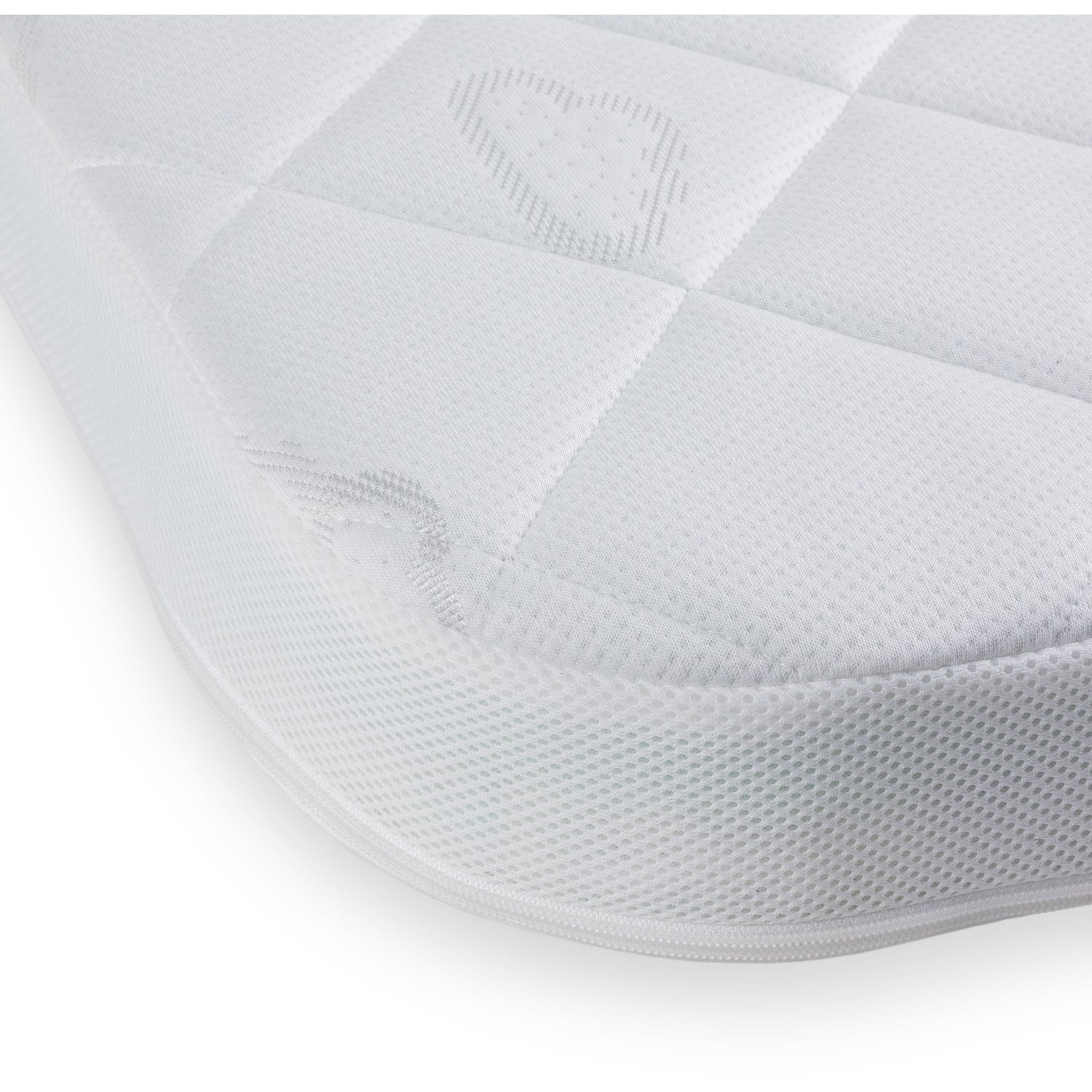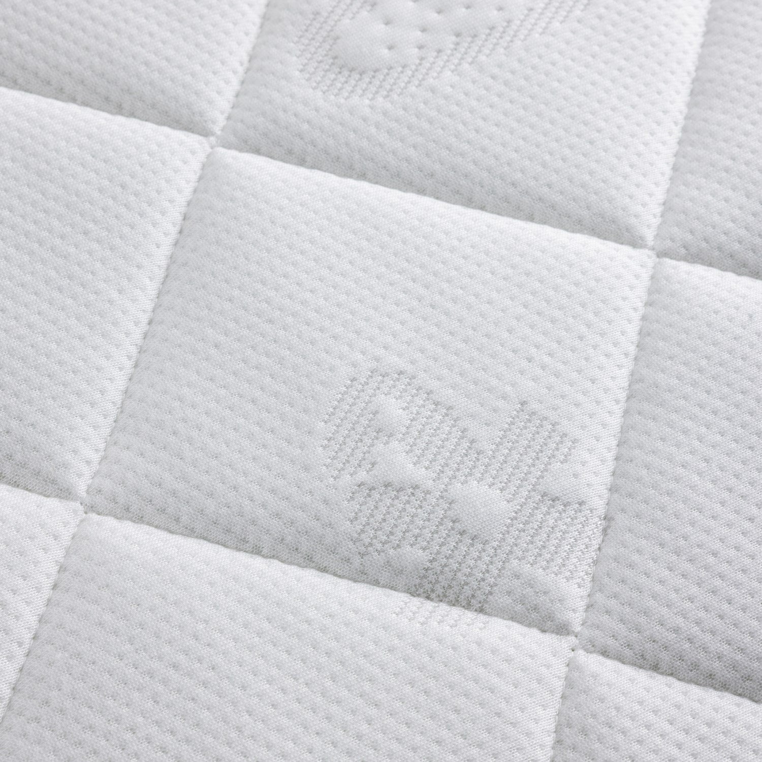 Trekket er laget av en blanding av hurtigtørkende polyester og naturlige TENCEL™ fibre, som sammen regulerer fuktighet for en behagelig soveopplevelse. Det FKTV-sertifiserte trekket sikrer også at ditt barn sover fritt for skadelige kjemikalier og allergener. I tillegg er madrassens design med en sikkerhetsglidelås tankefullt utformet for å hindre barnet i å åpne det ved et uhell, og det kan enkelt tas av for vask på 60 °C.