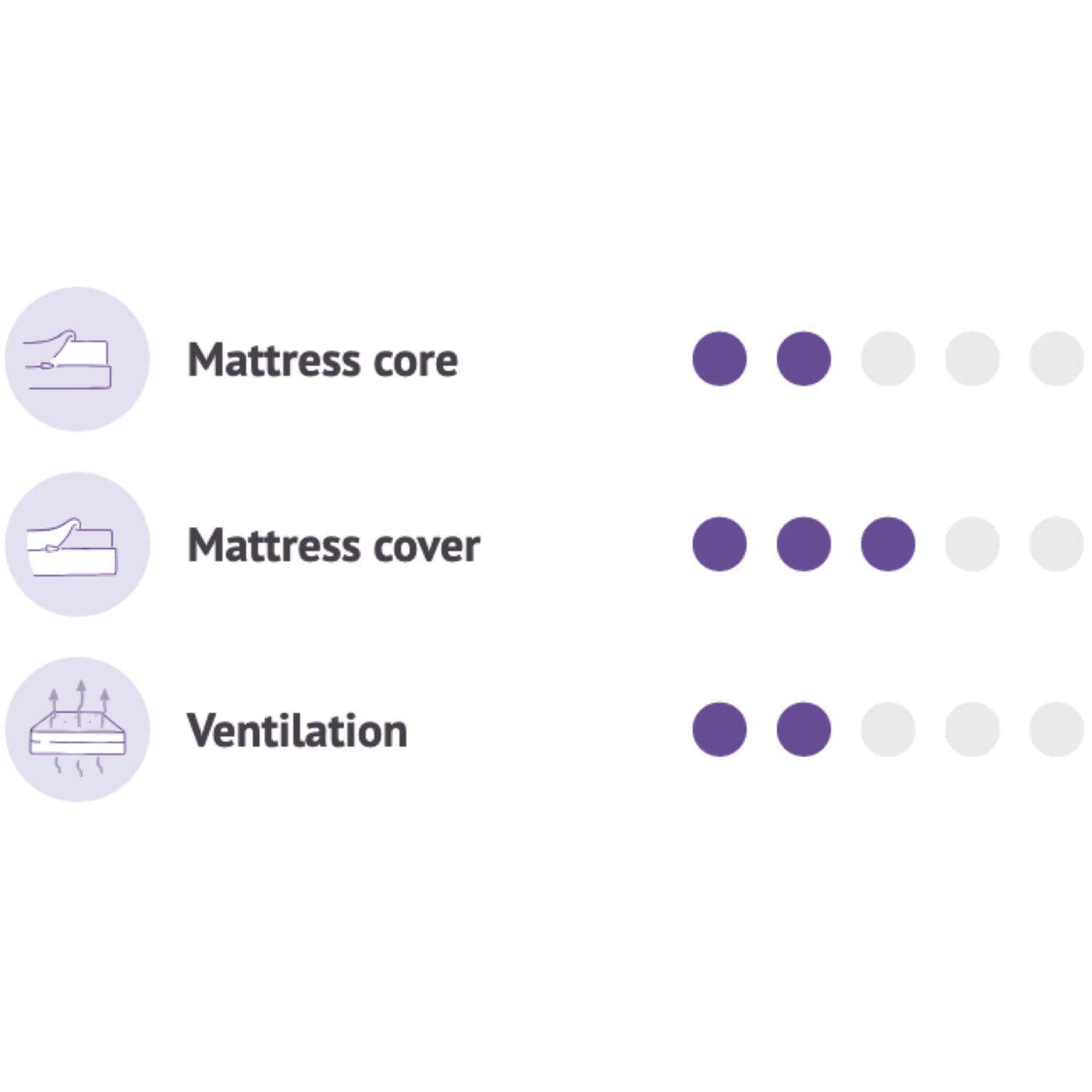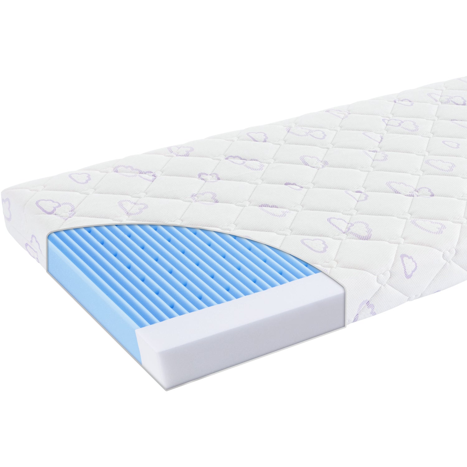 Utforsk en verden av fredelig søvn med Träumeland White Madrass Air Flow Comfort. Denne madrassen er designet for babyer, og har et unikt bølgekontursnitt for optimal luftsirkulasjon, forsterkede kanter for sikkerhet og doble hardhetsnivåer for å imøtekomme ditt voksende barns behov. Trekket har integrert våtbeskyttelse, noe som sikrer et tørt og behagelig sovemiljø. Denne madrassen er enkel å vedlikeholde og allsidig, og tilpasser seg ulike sengetyper, og gir både avslapning og skånsom stimulering for den lille.
