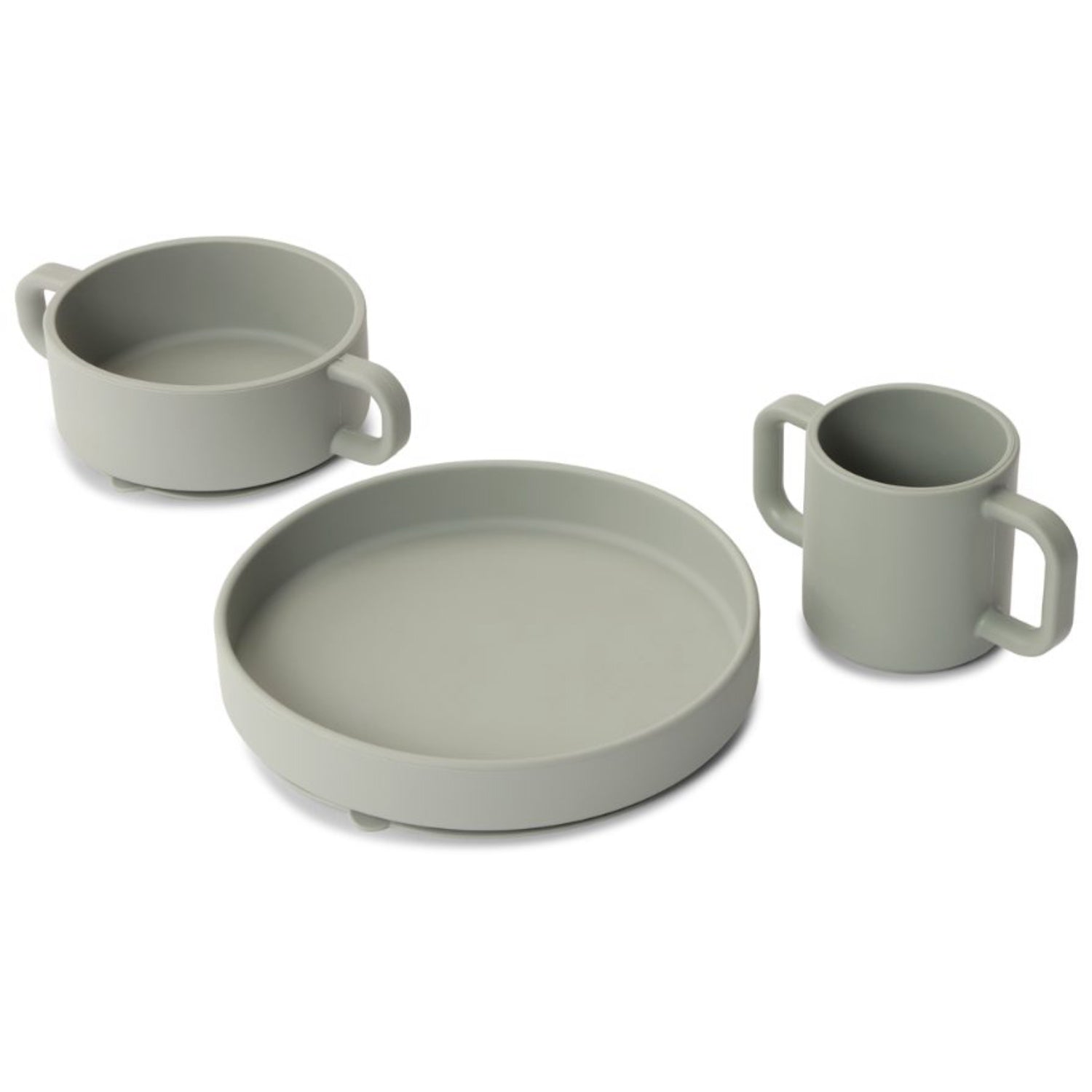 Opplev måltidene på en ny og trygg måte med Everleigh & Me Charcoal Spisestue Sett. Dette sjarmerende tre-delers settet er designet med tanke på barnas behov, med sugekopper på hver del for å sikre stabiliteten og unngå søl. Settet inkluderer en tallerken med høy kant for å lette selvstendig spising, en dyp skål med håndtak ideell for grøt eller suppe, og en kopp med store håndtak, perfekt tilpasset små barnehender.