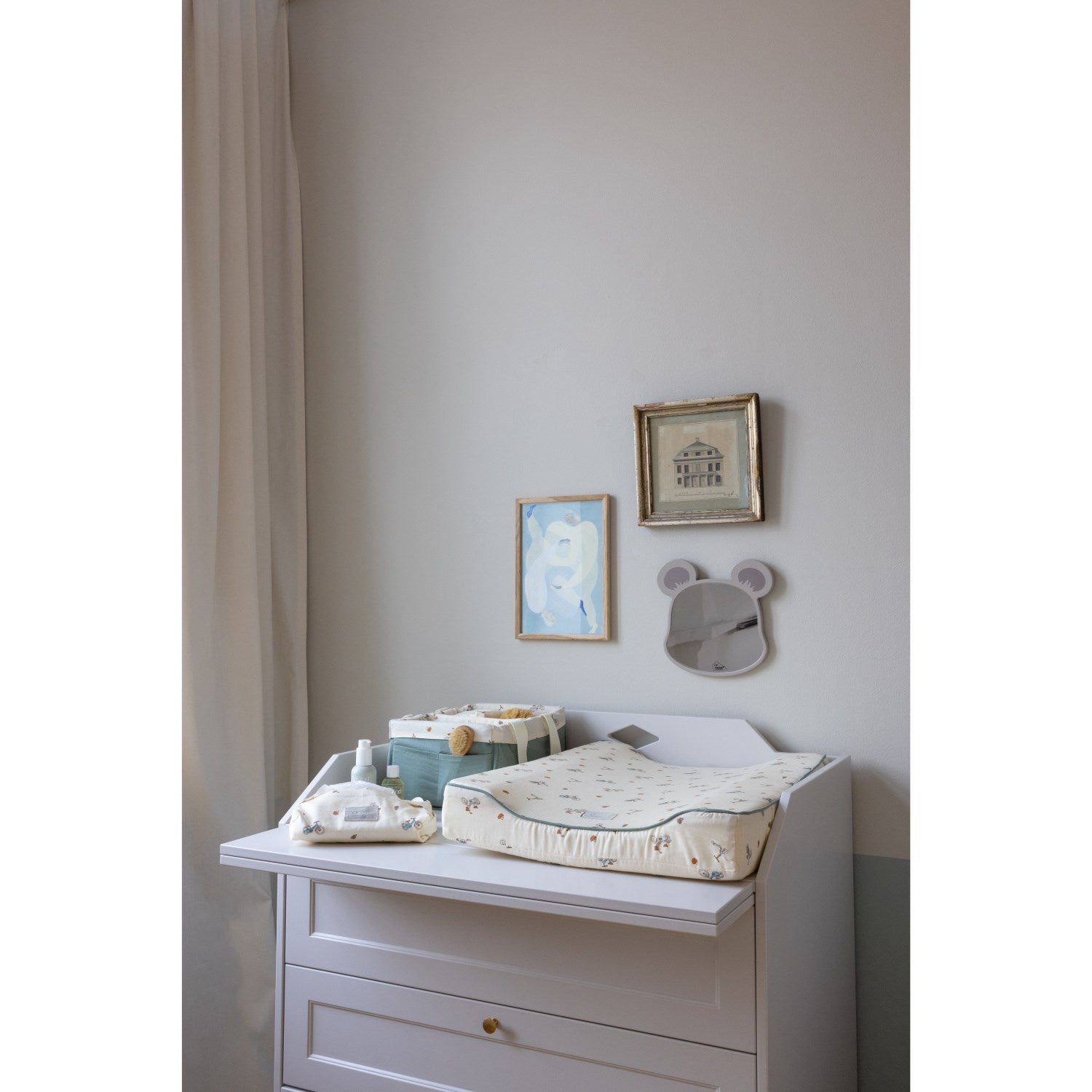 Tilgjengelig i apellerende grønne, brune og blå nyanser mot en kremhvit bakgrunn, fungerer denne stelleputen ikke bare som et nødvendig stelleverktøy, men også som en stilfull tilføyelse til enhver barnerom. Enhver forelder ønsker det beste for sitt barn, og med vår Stellepute fra Cam Cam Copenhagen, er komfort, sikkerhet, og stil garantert.
