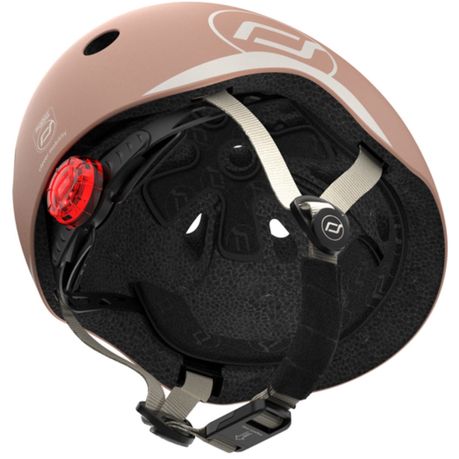 Oppdag den stilige og sikre Scoot & Ride Mocha-hjelmen, perfekt for de minste barna. Denne hjelmen kombinerer et robust matt PC-skall med støtabsorberende EPS på innsiden, sikret med myk fleece HF-teknologi polstring. Spesielt designet for å vokse med barnet ditt, den justerbare størrelsen fra XXS til S garanterer en perfekt passform gjennom ulike vekststadier. Med dens strålende LED-lys bak og enkel bruk av magnetisk spenne, tilbyr denne hjelmen overlegen synlighet og enkelhet i bruk. Tilgjengelig i åtte livlige farger, gjør denne hjelmen hver sykkeltur både sikker og stilfull. En ideell følgesvenn for små utforskere! Alder: 1-3 år Materialer: 100 % sikker plast, PVC-fri Bruksanvisning: Anti-bitt magnetisk trykknappspenne, hodestørrelse