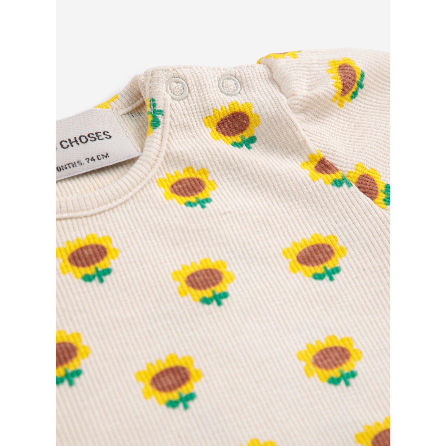 Bobo Choses Beige Sunflower All Over Balloon Sleeve T-Shirt