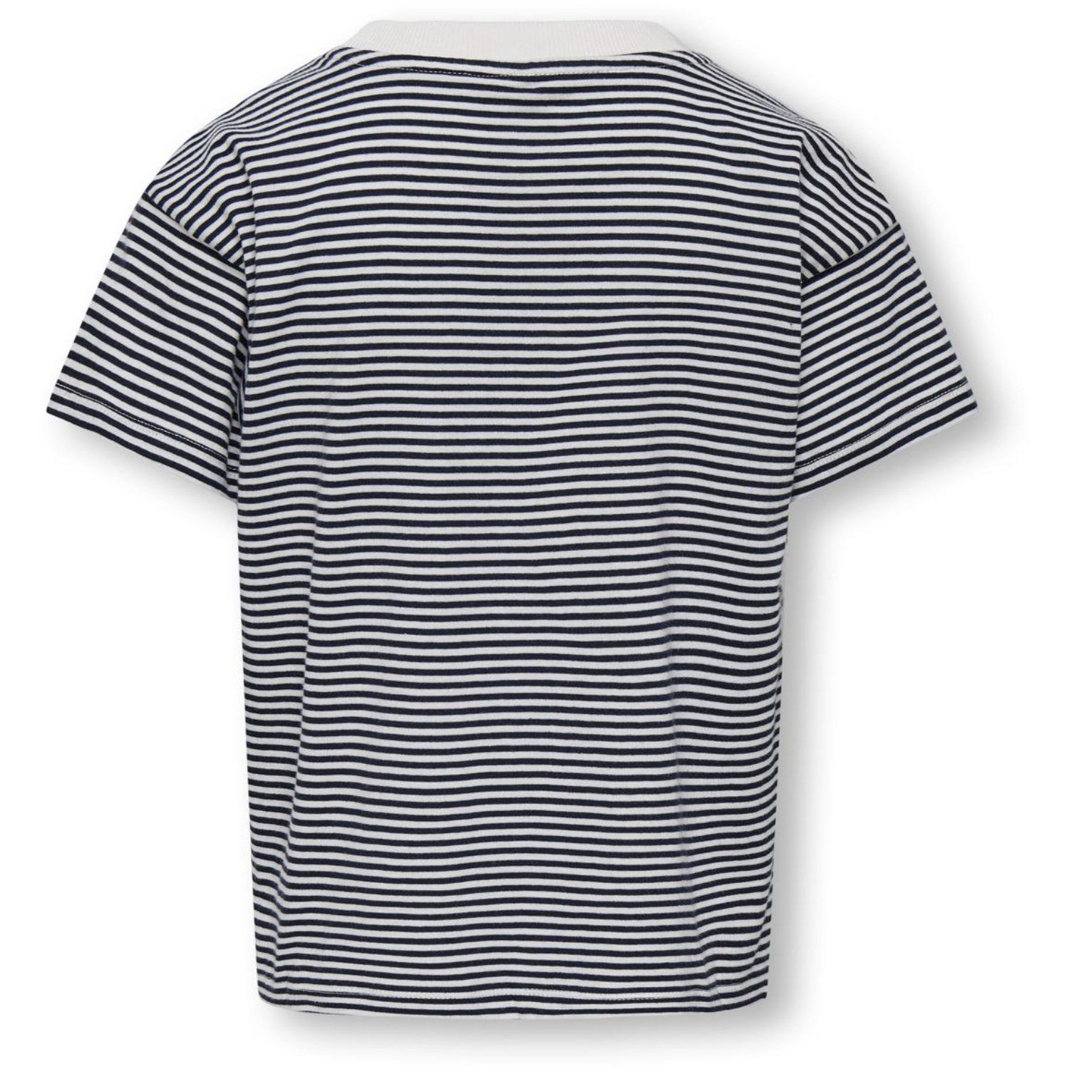 Gi barnets garderobe et løft med denne sjarmerende KIDS ONLY T-skjorten. Enten det er skole, lek eller familieutflukter på planen, våre T-skjorter med sitt naturlige bomullsmateriale sikrer et mykt og pustende plagg som barna vil elske. Denne søte trekket har kule Y/D-stripemønstre i Cloud Dancer og Sky Captain farger, pyntet med et rødt hjerte for litt ekstra stil.