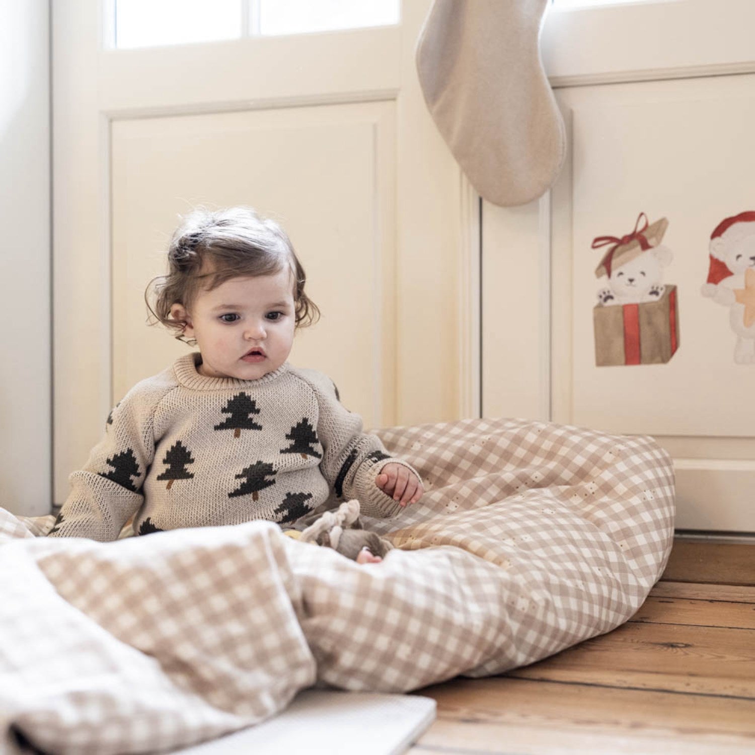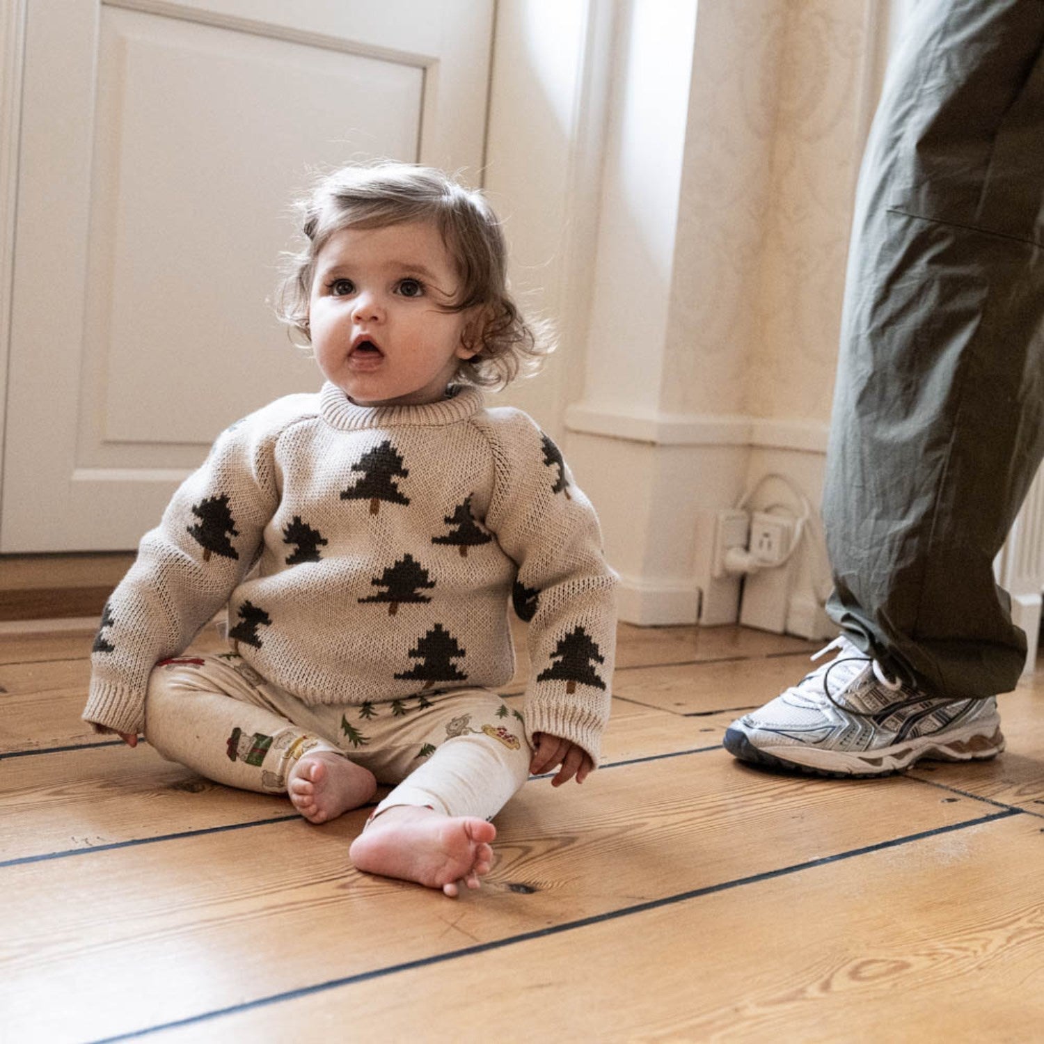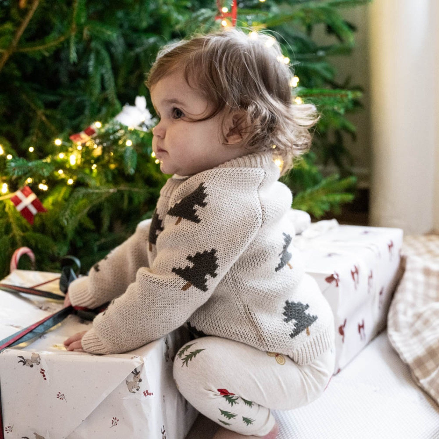 Opplev gleden av høytidens komfort med "That's Mine Oatmeal Melange Fabian Strikke". Denne sjarmerende genseren er vevd av økologisk bomull, og gir en utrolig mykhet som er perfekt for barnets hud. Med sitt unike mønster av søte små juletrær, ikke bare ser den nydelig ut, men den er også designet for å passe komfortabelt. Den naturlige fargepaletten og tidløse design gjør den til et yndet plagg i vintergarderoben. Lett å vedlikeholde, denne genseren sikrer at stil møter funksjonalitet, perfekt for festlige anledninger eller avslappende hjemmedager.