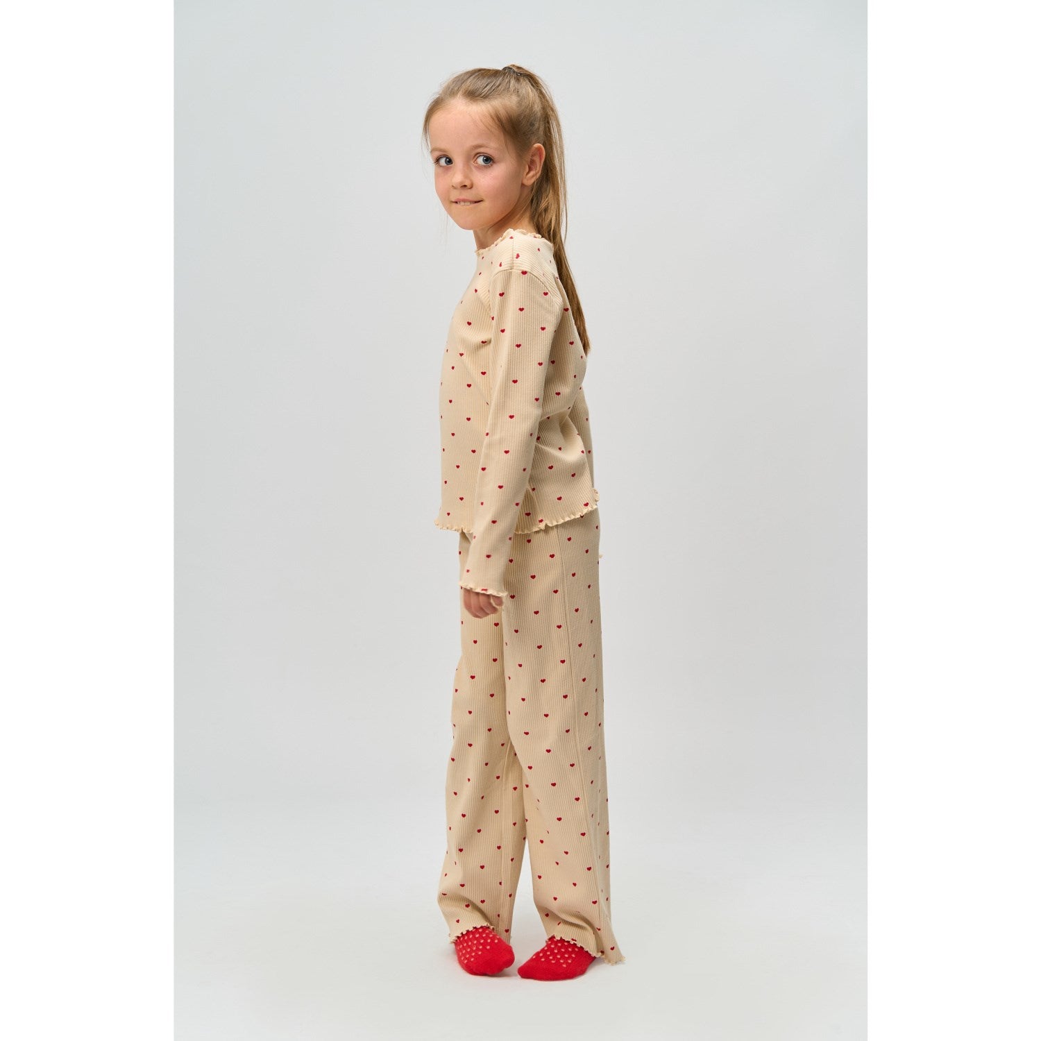 Oppdag den perfekte soveopplevelsen for dine små med The New Gardenia AOP Holiday Heart Rib Night Sett. Dette nydelige nattøysettet fremstår i en elegant kremfarge pyntet med et lekent hjertemønster over det hele, noe som tilfører et søtt og stemningsfullt preg. Settet, som omfatter en langermet ribbestrikket bluse og matchende bukser, garanterer en behagelig passform gjennom hele natten takket være det elastiske, ribbestrikkede stoffet. Dets økologisk sertifiserte materiale (GOTS Organic) er både mykt og mildt mot barnets hud, ideelt for både avslapning og en uforstyrret søvn. I tillegg tilbyr settet en stilfull mulighet for å matche antrekkene til hele familien under festlige sammenkomster. Ta familiekos til et nytt nivå denne sesongen med dette sjarmerende og komfortable nattsettet.
