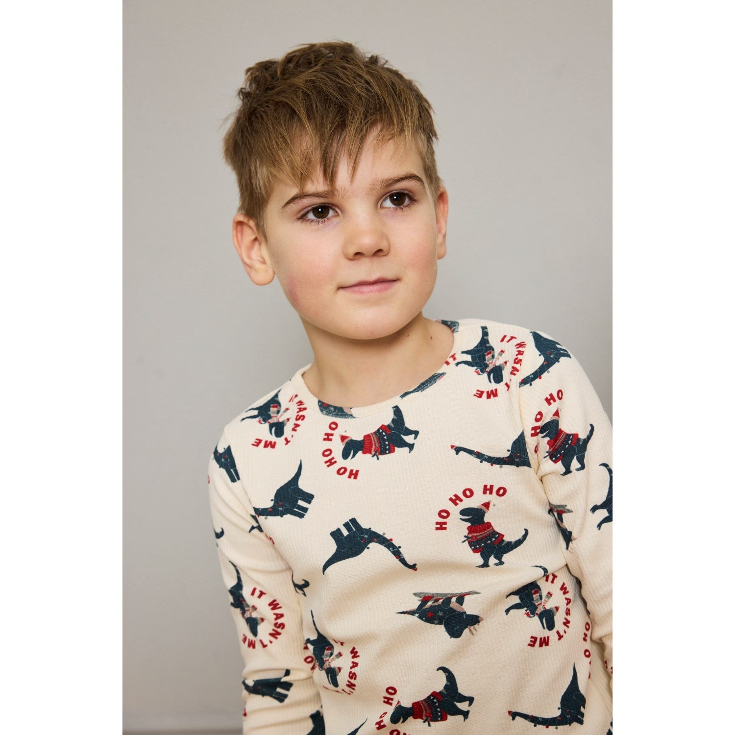 Gjør nattestunden ekstra spesiell med The New Gardenia Dino AOP Holiday Rib Night Sett – det perfekte valget for barn som elsker fasjonable og komfortable soveklær. Dette settet er laget av GOTS-sertifisert, økologisk ribbestrikk som garanterer både mykhet og elastisitet, noe som sikrer en god natts søvn. Utformet med øye for detaljer, har nattsettet et sjarmerende design med livlige farger og mønstre. Velg mellom bedårende katter med nisseluer eller morsomme dinosaurer i julegensere, begge trykk er sikker på å lyse opp ethvert barns kveldsrutine. Med tekster som «ho ho ho» og «det var ikke meg», tilfører disse plaggene en leken og humoristisk stemning til juletiden. Nattsettet består av en behagelig langermet bluse og matchende leggings, som tilbyr en normal passform for ubegrenset bevegelse gjennom natten. Det ribbede stoffet er ikke bare stilig, men også svært funksjonelt, ettersom det holder den lille varm uten å være for stramt. Dette settet er ideelt for kalde vinterkvelder og avslappede juledager, eller som en unik og tenksom gave. For de som liker familietradisjoner, tilbyr dette settet også muligheten for matchende voksenstørrelser, noe som gjør det mulig for hele familien å samles i matchende stil i høytiden.