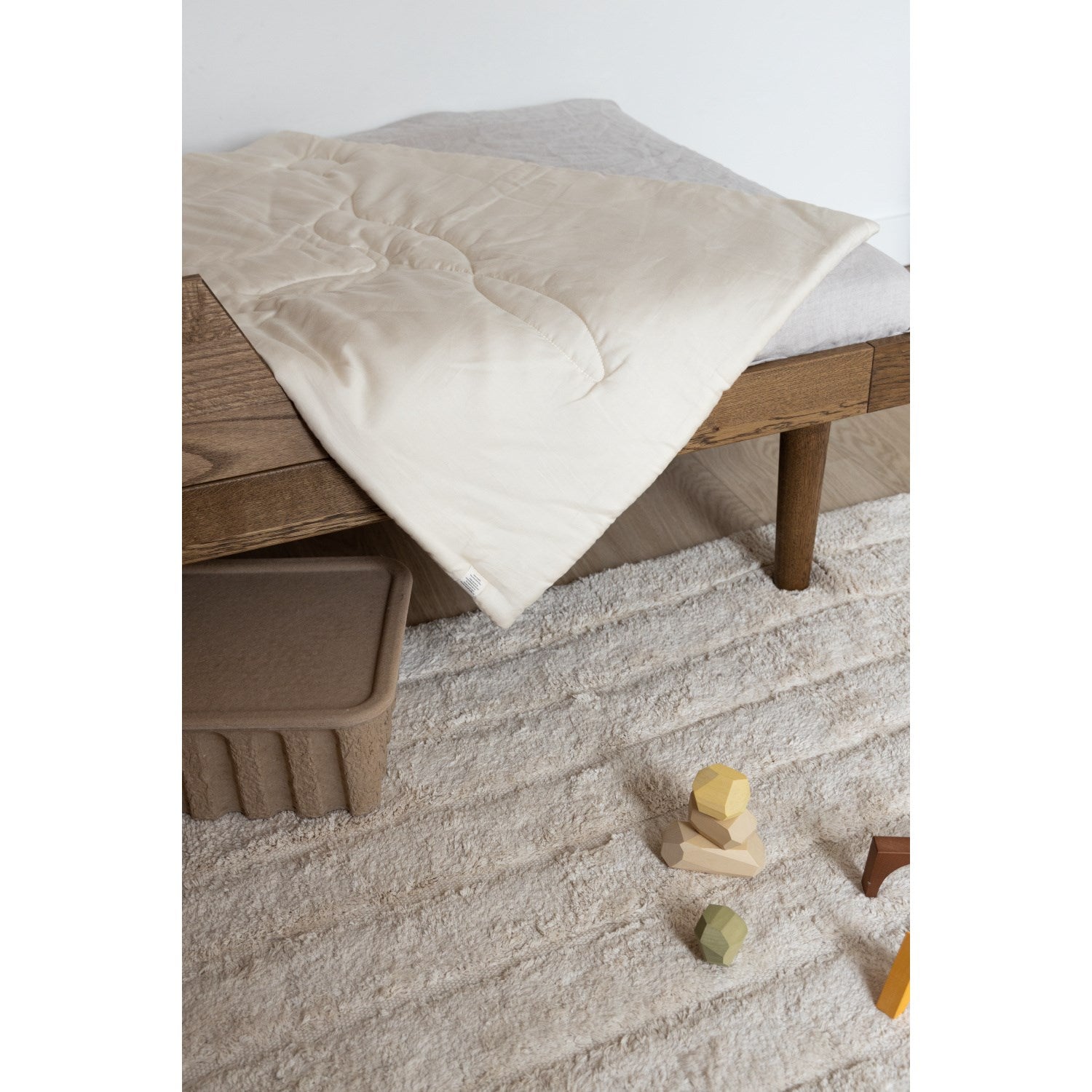 Gjør barnerommet ekstra lunt og koselig med KAS Kopenhagen Beige Dragon Fly Teppe. Dette allsidige babyteppet er laget av den mykeste økologiske bomullen, ideelt for svøping av babyen, som et varmende sengeteppe eller en behagelig lekematte. Lett å vedlikeholde, det sikrer også optimal komfort og sikkerhet for de minste.