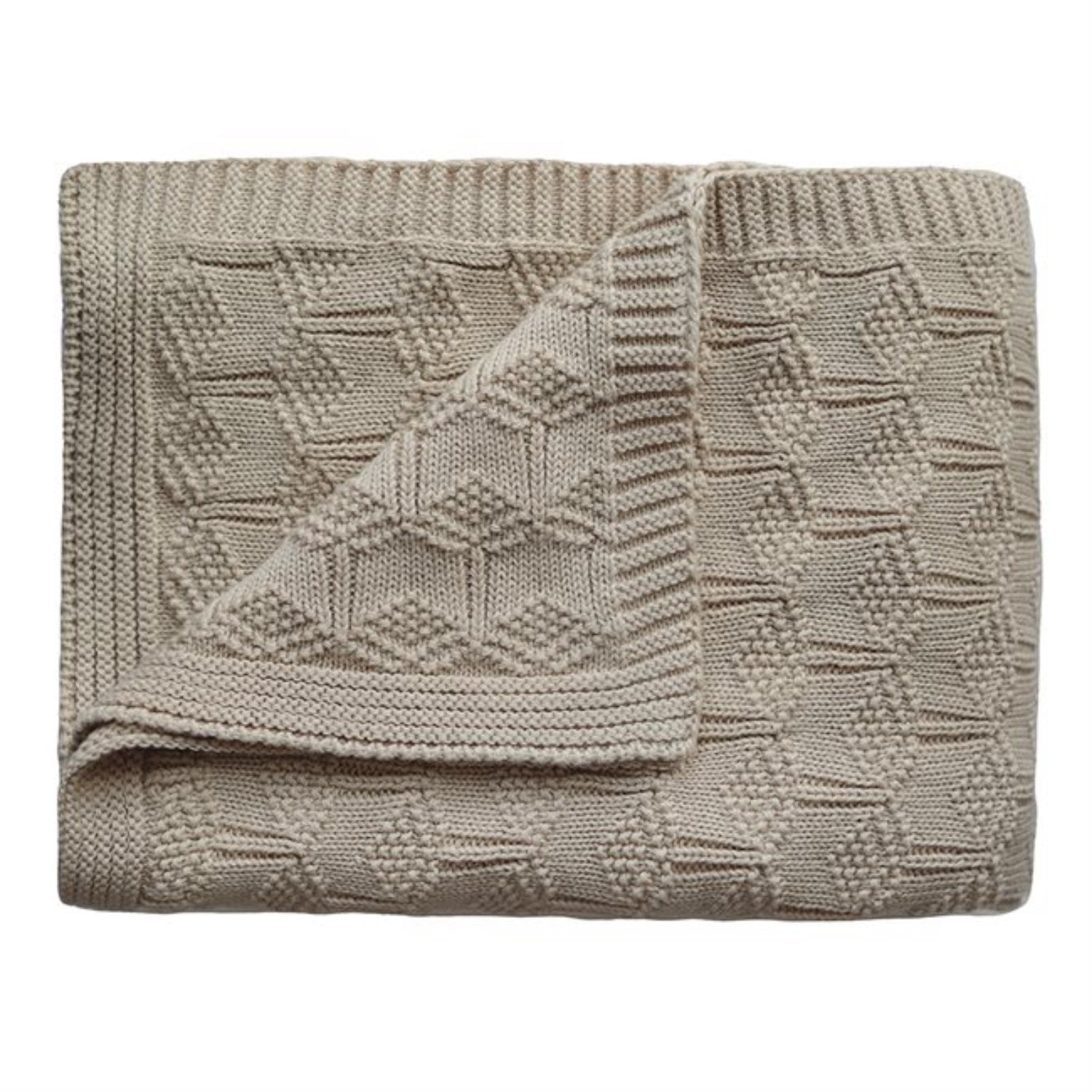 Mushie Honeycomb Beige Strikket Baby Teppe