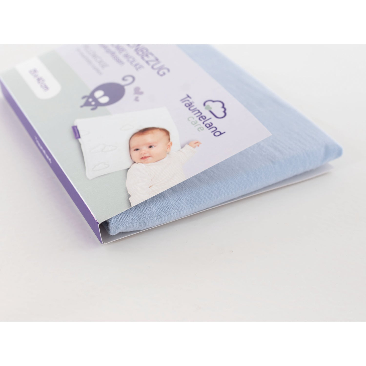 Oppdag den herlige komforten til Träumeland Light Blue putetrekk, perfekt skreddersydd for barnets skypute. Dette putetrekket er laget med førsteklasses sikkerhetssertifiseringer og designet for enkelt vedlikehold, og sikrer en avslappende søvn i en ren og leken lyseblå nyanse. Den er allsidig, enkel å oppbevare og forbedrer den lilles leggetid med skånsom stimulering og moro. Et koselig tillegg til ethvert barns soverom! Materialer: 97 % TENCEL™ , 3 % elastan Mål: Størrelse 25 x 40 x 3 cm Vaskeinstruksjoner: 60 grader, egnet for skånsom maskintørking Sertifiseringer: OEKO-TEX STANDARD 100, 47693 OETI