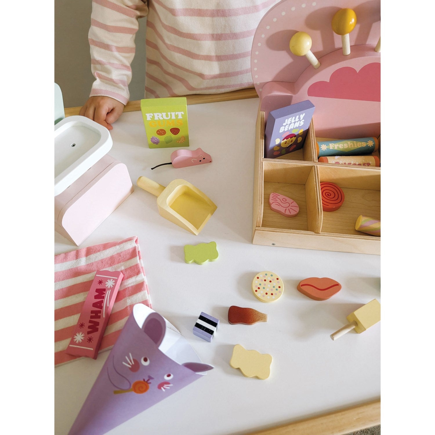 Gled de små med en sjarmerende og pedagogisk Tender Leaf Slikbutikk, som gjør leketid både morsom og lærerik. Perfekt for barn i alderen 3-5 år, denne fargerike godteributikken inviterer til kreativ lek med trygge, solide treleker. Her kan barna velge blant flere typer søtsaker fra hyller og bokser, og lære seg enkel matematikk ved å veie godteri og bruke dekorative stoffposer til servering.