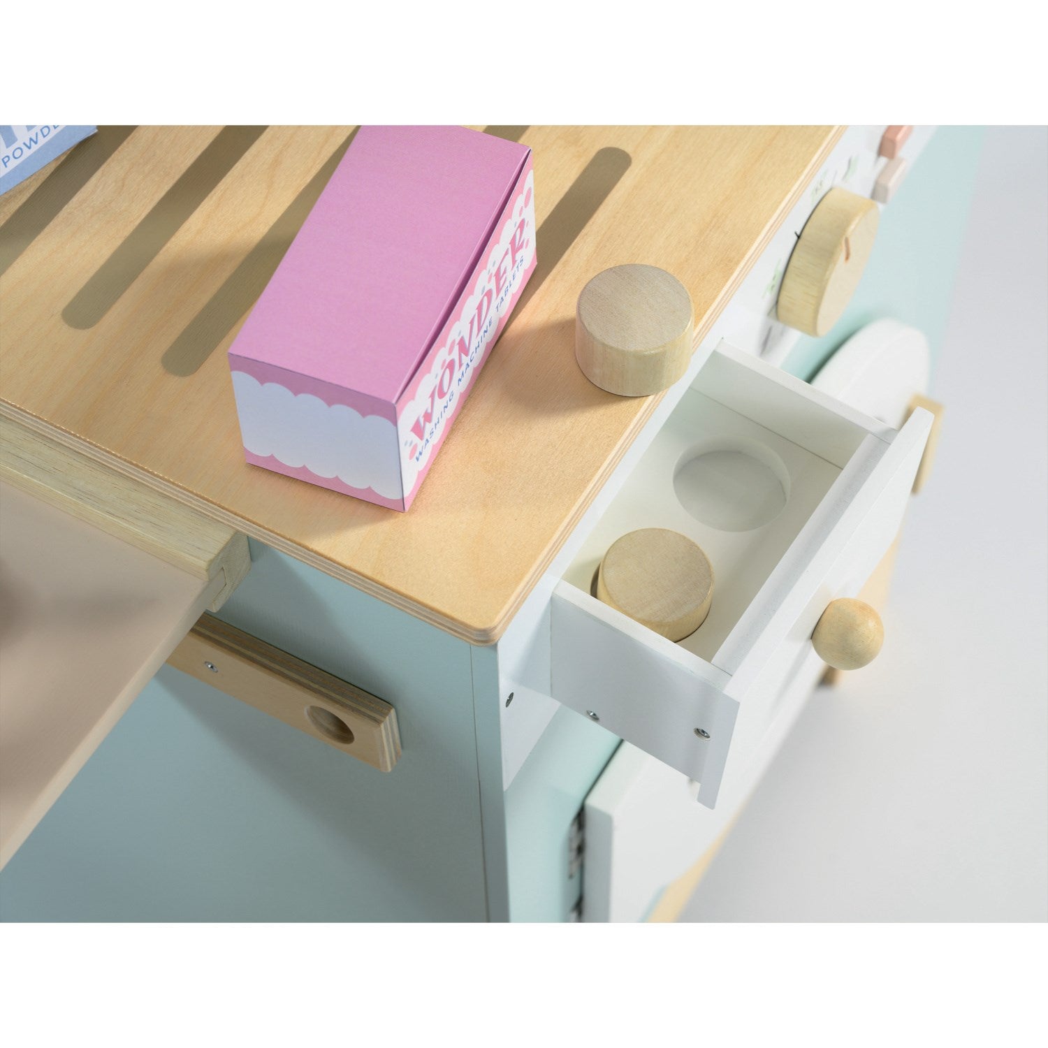 Oppdag gleden ved rollespill med vår sjarmerende Tender Leaf Vaskemaskine, skreddersydd for småbarn fra 3-5 år. Dette kjøkkentilbehøret lar barna utforske og lære gjennom lek, med muligheter for å vaske, tørke og stryke dukkeklær. Vaskemaskinen er full av interaktive elementer som såpeskuff, trykknapper og roterende knotter som klikker, noe som fremmer både motoriske ferdigheter og årsak-virkning forståelse. Inkluderte tilbehør som vaskemidler, strykejern, og treklemmer oppfordrer til detaljert og engasjerende lek, mens den håndterbare størrelsen og enkle monteringen gjør det like lett å rydde bort som å ta i bruk. Laget av holdbart tre og med en barnevennlig design, sikrer denne vaskemaskinen at rollelekene ikke bare er morsomme, men også trygge.