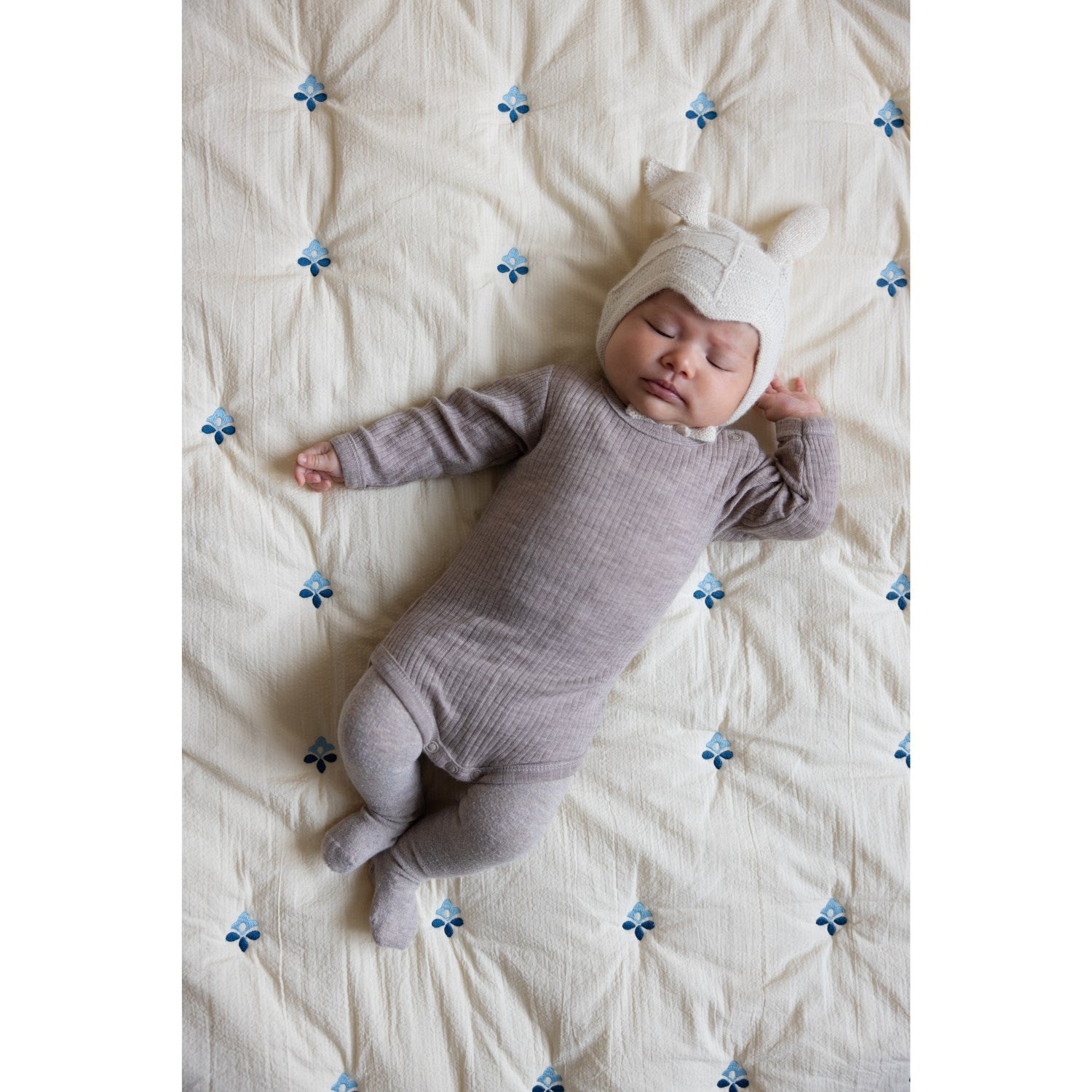 Teppet er tykt polstret, noe som sikrer både holdbarhet og komfort. Om det brukes for koselige stunder på gulvet, som et dekorativt sengeteppe, eller som et varmt kosepledd, leverer dette produktet konsekvent. Dets myke økologiske bomullsmateriale er skånsomt mot barns sensitive hud og tilbyr en trygg og behagelig opplevelse.