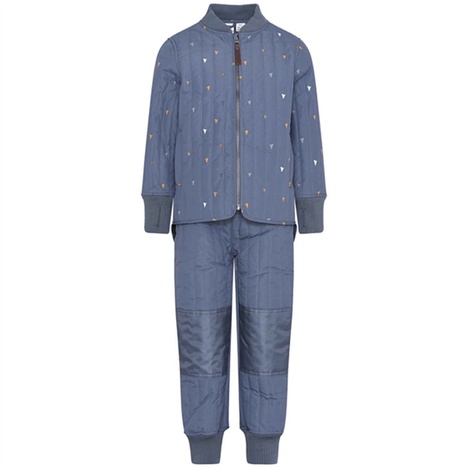 Termosett fra ENFANT. Settet består av en jakke og bukse. Kul termojakke fra EN FANT med all-over print av små trekanter. Termojakken har ribbekanter i halsen og ribbekanter ved håndledd med tommelhull. To frontlommer. Lukkes med glidelås med hakebeskyttelse. Refleksrør på baksiden hjelper til med å holde babyen synlig. Jakken selges også separat Buksen er ensfarget og har god passform. De har strikk i midjen, ribbekanter ved anklene og er ekstra forsterket bak og på knærne. Impregnert med BIONIC-FINISH® ECO, som er et fluorfritt og økologisk belegg.