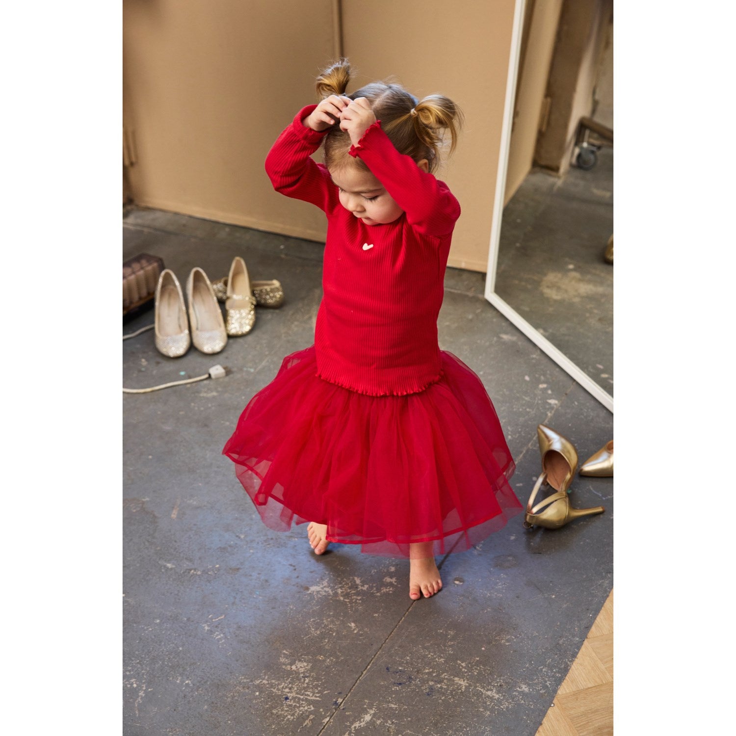 Gled barnet ditt med denne sjarmerende langermede T-skjorten fra THE NEW Siblings, perfekt for aktive dager og avslappende ettermiddager. Fremstilt i GOTS-sertifisert økologisk bomull, sikrer denne toppen både komfort og holdbarhet. Den smale passformen, sammen med bølgete kanter og et søtt hjertetrykk på brystet, tilfører et stilfullt og lekent element. T-skjorten er utmerket til både lek og skole, lett å style med alt fra jeans til skjørt. Med tilgjengelighet i to farger, kan du velge den som best passer ditt barns personlighet. Dette plagget kombinerer praktisk komfort med søt estetikk, noe som gjør det til en favoritt i enhver barne-garderobe.