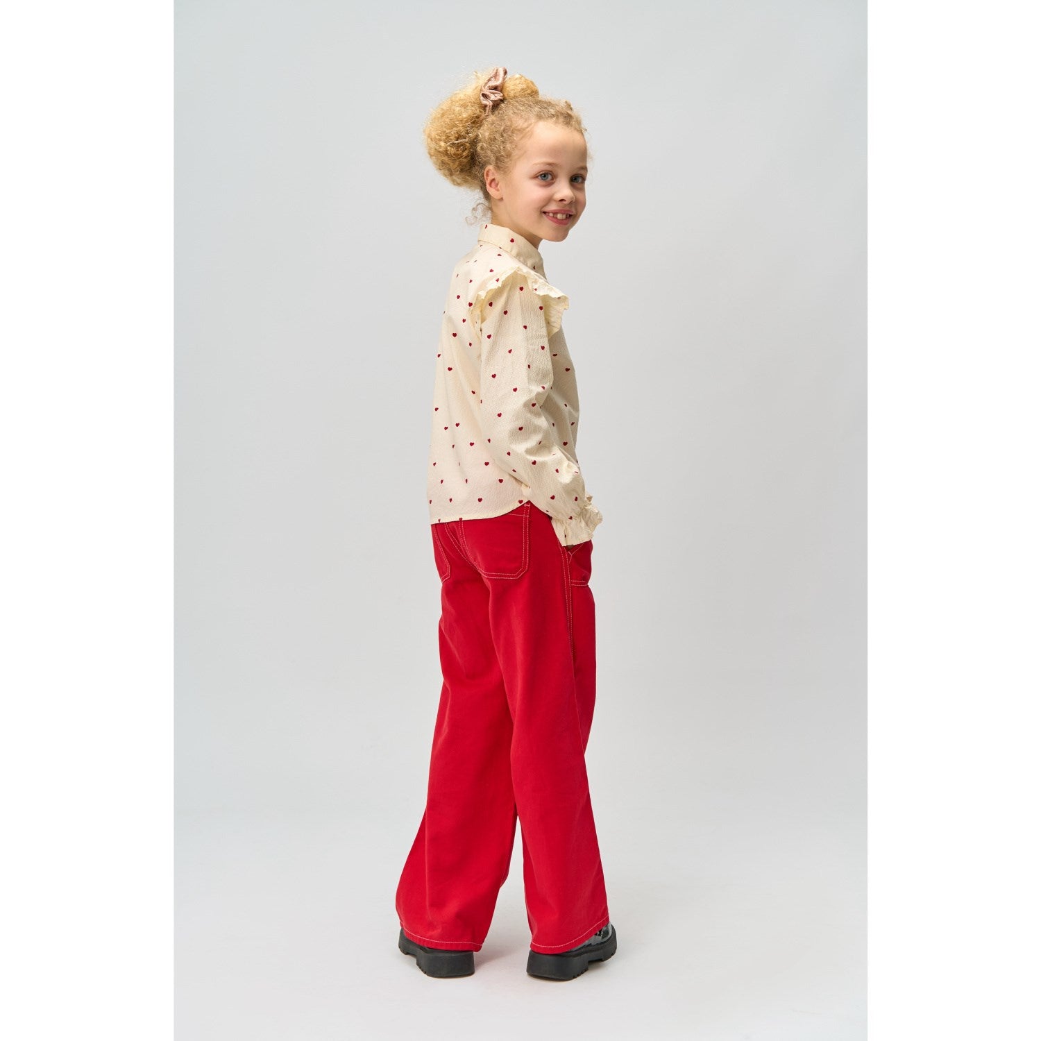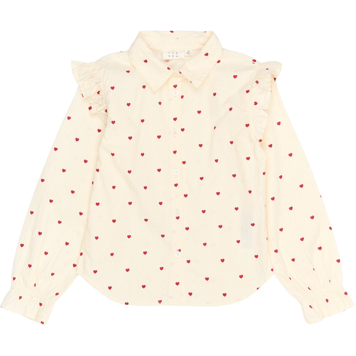 Gjør hverdagen litt søtere med denne sjarmerende skjorten fra THE NEW! Den er laget av et mykt og behagelig materiale, perfekt for barnets sensitive hud. Med sitt klassiske snitt og regular fit, sikrer den en komfortabel passform hele dagen. Skjorten er pyntet med et lekent hjerteprint over hele, noe som garantert vil fange blikket og bringe smil. Det stilfulle flipkragen tilfører et moderne preg, mens de søte rysjene på skuldrene legger til en feminin finesse. Allsidig nok for både skole og festlige sammenkomster, denne skjorten kombinerer form og funksjon for å holde ditt barn både komfortabelt og moteriktig. Vaskes lett og holder seg pen bruk etter bruk.