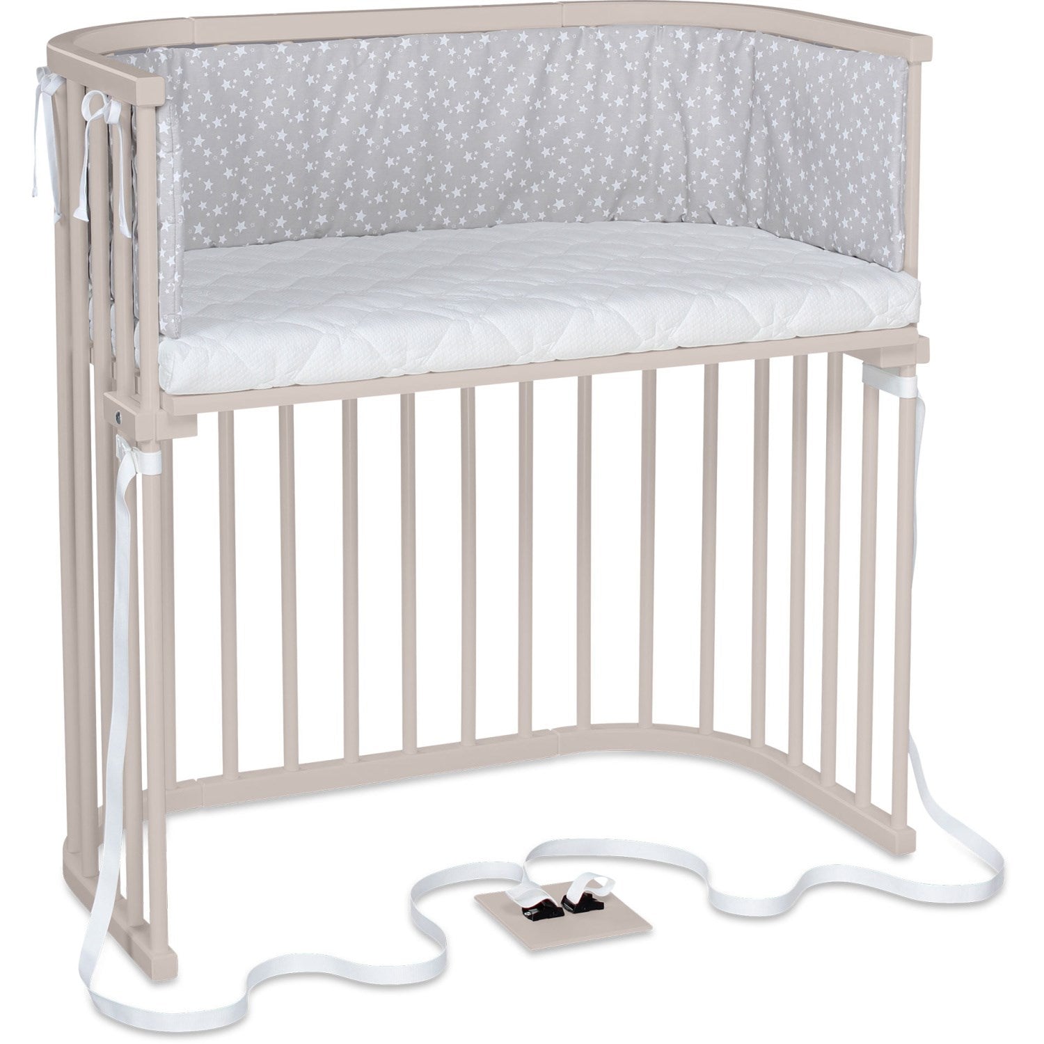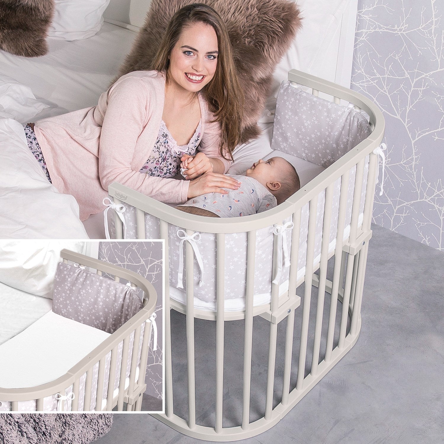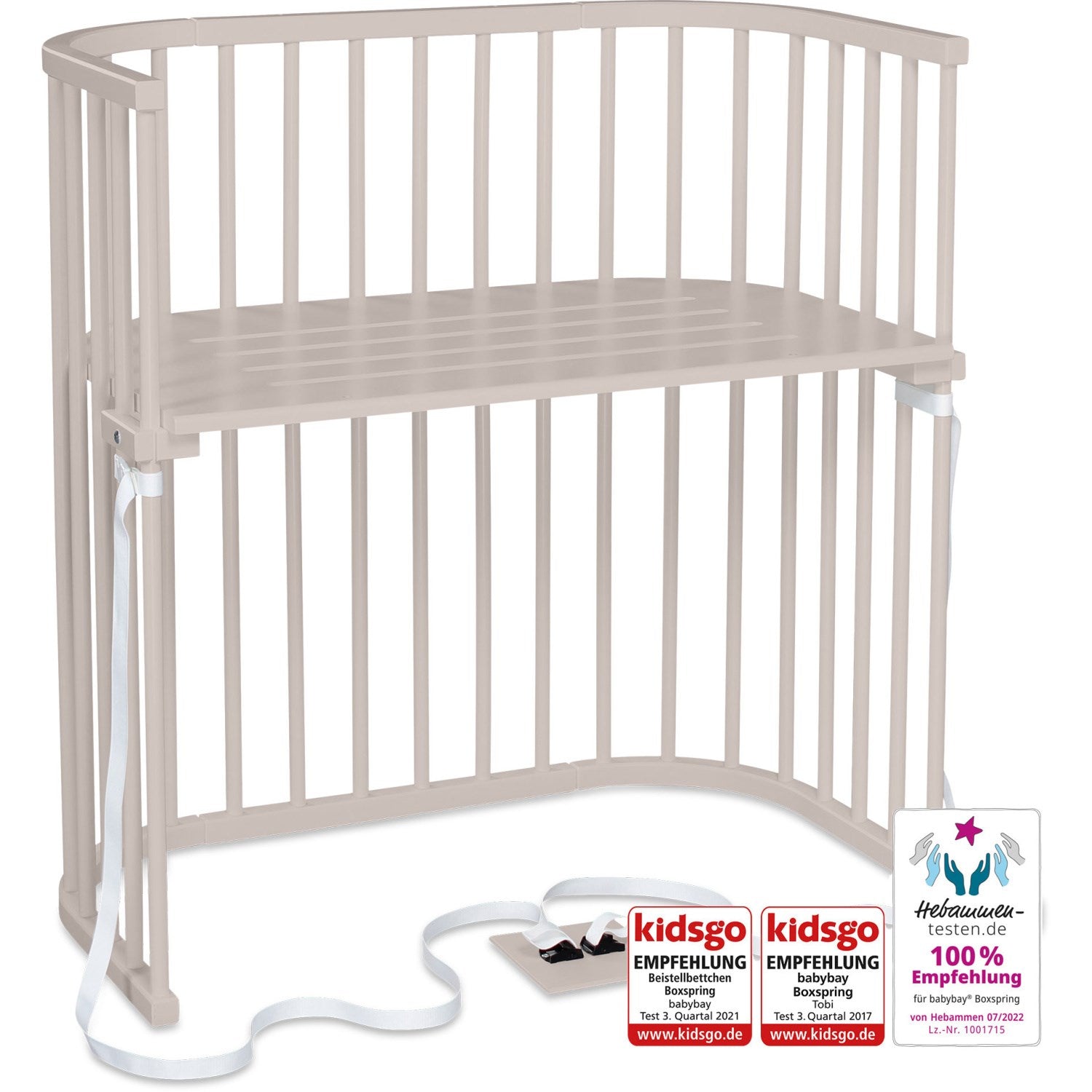 Oppdag babybay® Boxspring, den ideelle løsningen for høye senger og foreldre som verdsetter sikkerhet og komfort. Dette spesialdesignet co-sleeperen tilpasser seg perfekt til høyden på din boxspring-seng, takket være en patentert trinnløs høydejustering som sikrer at liggeflaten alltid er i flukt med familiesengen. Denne nære plasseringen til foreldresengen fremmer trygghet og enkel tilgang til ditt barn om natten. babybay® Boxspring er ikke bare funksjonell, men også en fryd for øyet. Velg mellom en rekke farger og tilpass co-sleeperen med ulike madrasser og babynest for å skape en innbydende soveplass for din lille. I tillegg til estetikk, er denne co-sleeperen designet med tanke på barnets komfort og ergonomi, med gode luftsirkulasjonsmuligheter. I tillegg til dets primære bruk, er babybay® Boxspring også designet for å vokse med barnet. Enkelt omdannet til en benk eller et lekebord, tilbyr det langvarig funksjonalitet og lærerike muligheter. Anbefalt av jordmødre og ammekonsulenter, og med over 15 års tillit fra foreldre verden over, babybay® Boxspring er en prisbelønnet løsning som sikrer komfort, sikkerhet og stil.