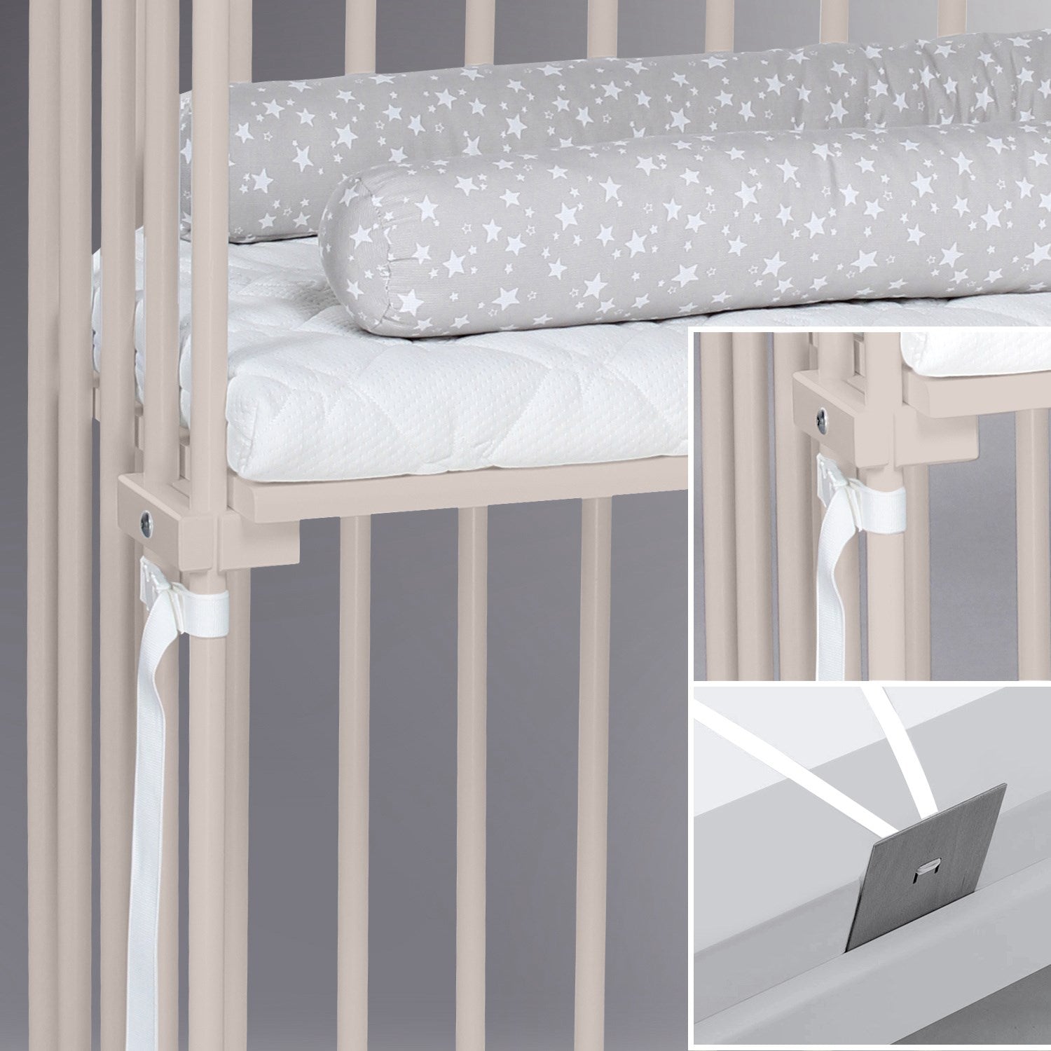 • Bæltefastgørelse - så den nemt og sikkert kan fastgøres uden værktøj til enhver boxspring-seng