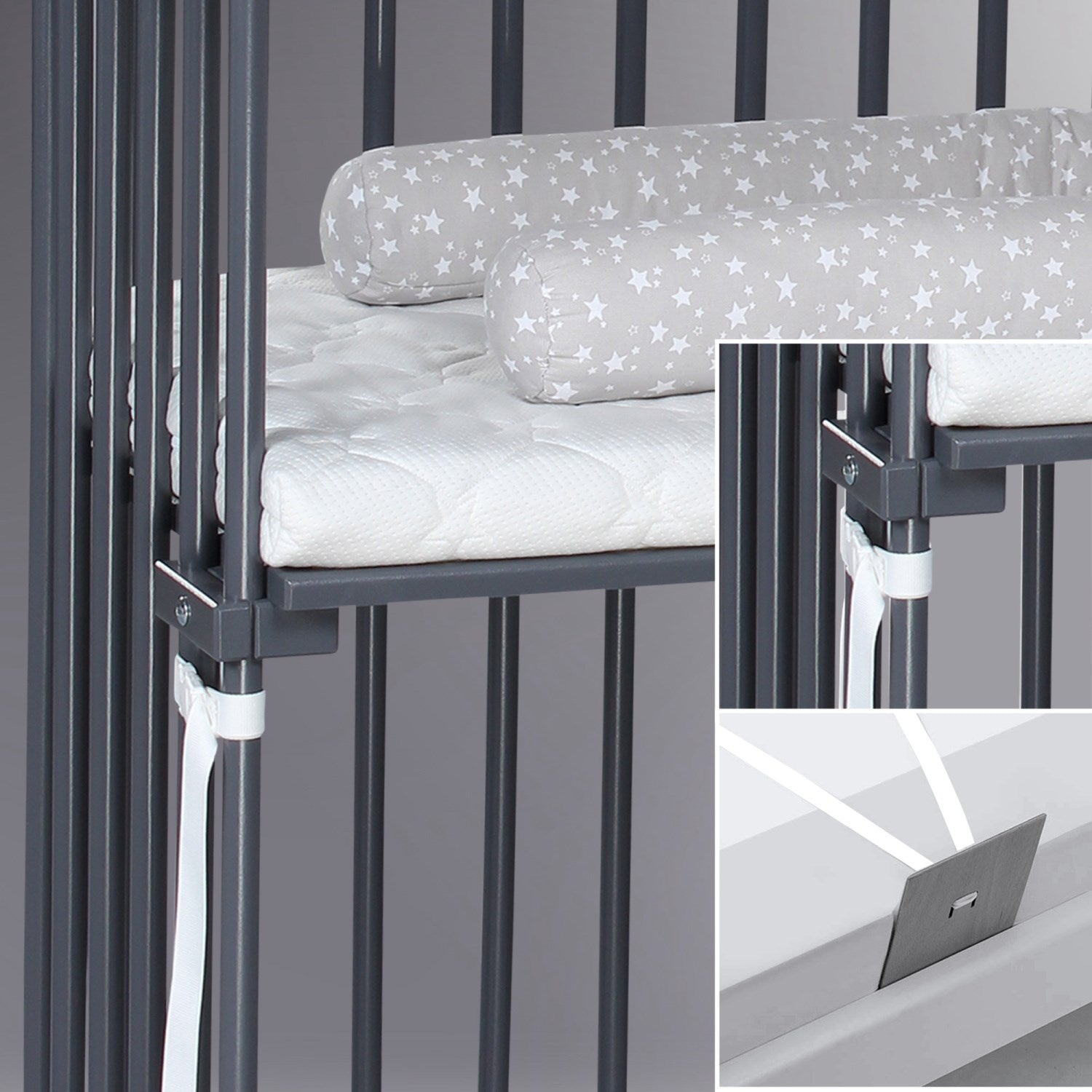 Med det valgfrie fastgørelsessæt med vinkler kan babybay® Boxspring også fastgøres til høje senge med rammer