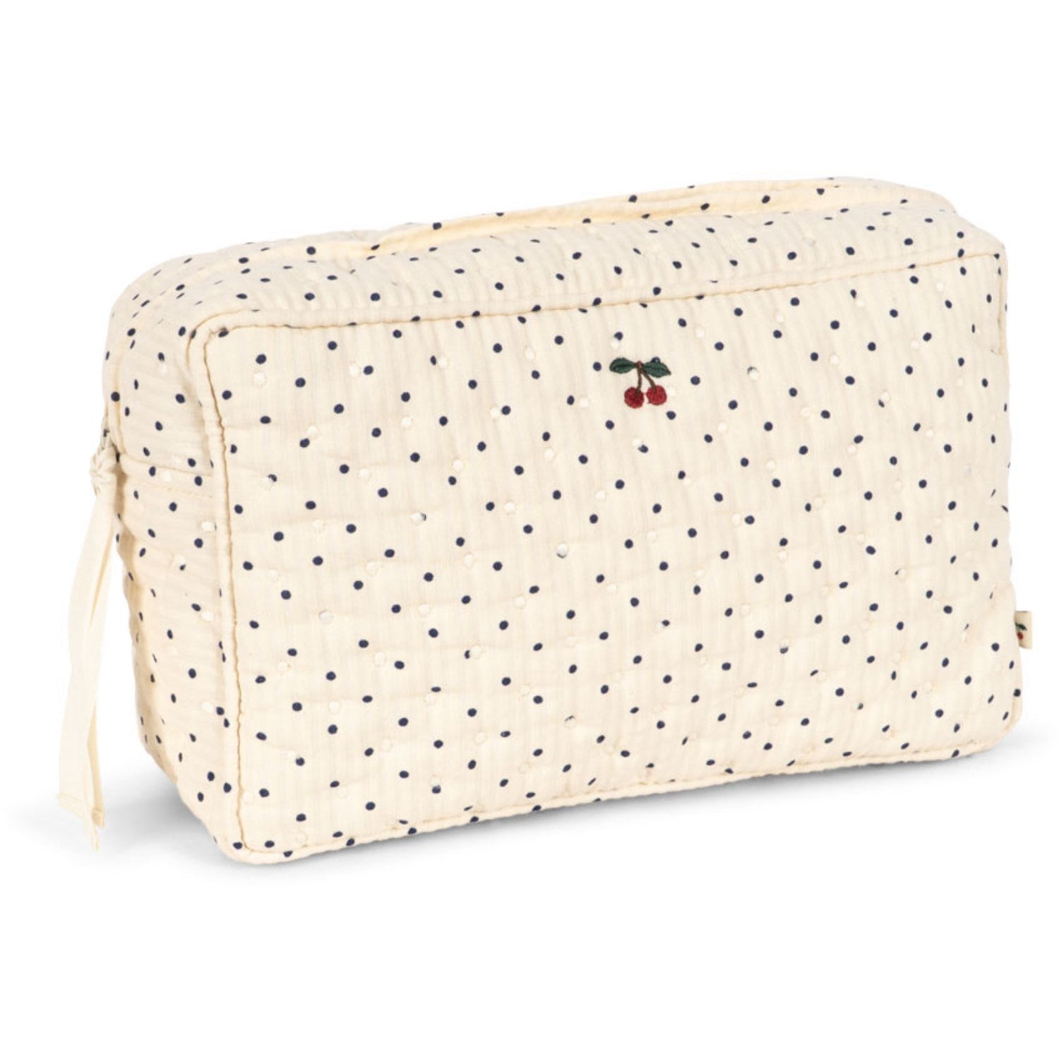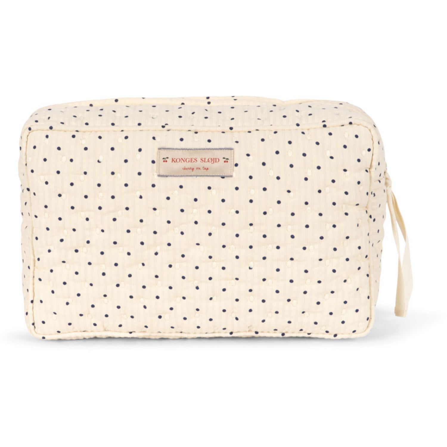 Oppdag Konges Sløjd Estate Dot Seersucker Big Toiletry Veske, en stor og vakkert quiltet toalettmappe perfekt til barnets essensielle. Denne mykt polstrede vesken produsert av økologisk bomull sikrer en behagelig og trygg oppbevaring med sitt store hovedrom og en praktisk innerlomme. Enkel å bruke med sin smidige glidelås, gjør denne vesken både funksjonell og elegant for daglig bruk. Ideal fra barnehage til familieturer, den beskytter og organiserer barnets eiendeler elegant.