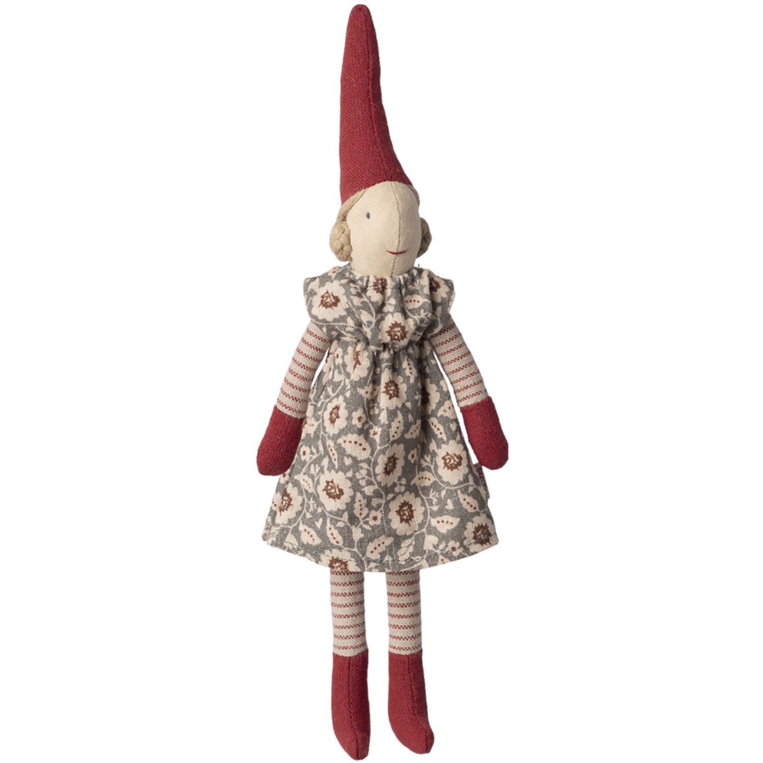 Oppdag Maileg Pixy, en sjarmerende tøydukke fra nissekolleksjonen, perfekt kledd i en vinterlig mintkjole. Denne dukken er ikke bare et blikkfang, men også utviklet for å fremme barnas kreativitet og motoriske ferdigheter takket være magneter i hendene og venstre fot, noe som gjør leken interaktiv og engasjerende. Ideell for barn som ønsker en lekekamerat å ta med overalt, og den er lett å oppbevare og vedlikeholde. En ideell gave som bringer julemagi hele året!