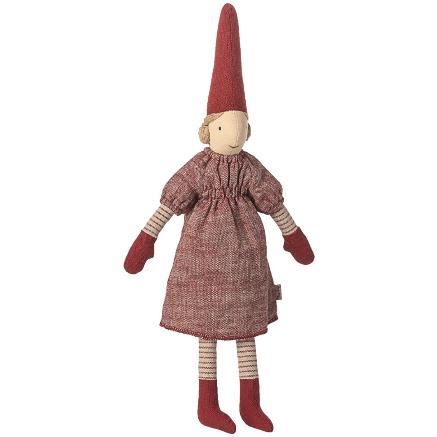 Oppdag den sjarmerende Maileg Pixy dukken, størrelse 2, kledd i en nydelig rød kjole. Denne tøydukken er en del av Mailegs eksklusive alvekolleksjon, perfekt for å skape en magisk julestemning i hjemmet. Laget av førsteklasses materialer, er Maileg Pixy ikke bare et blikkfang i juledekorasjonen, men den er også designet for å være trygg og lett å leke med for barn. Dukken oppfordrer til kreativ lek og interaktivitet, passer for barn og er enkel å ta med seg overalt. Vedlikeholdet er enkelt, noe som gjør denne bedårende dukken til et ideelt valg for både lek og pynt.