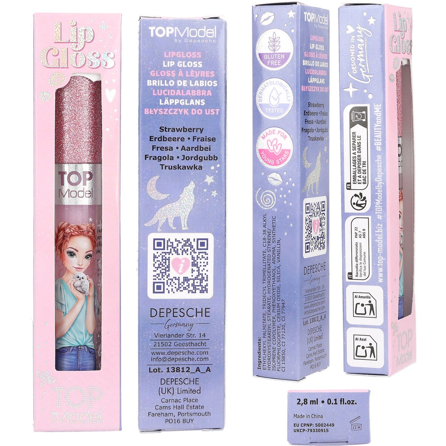 TOPModel Beauty And Me Rose Strawberry Lip Gloss Med Glitter Caps